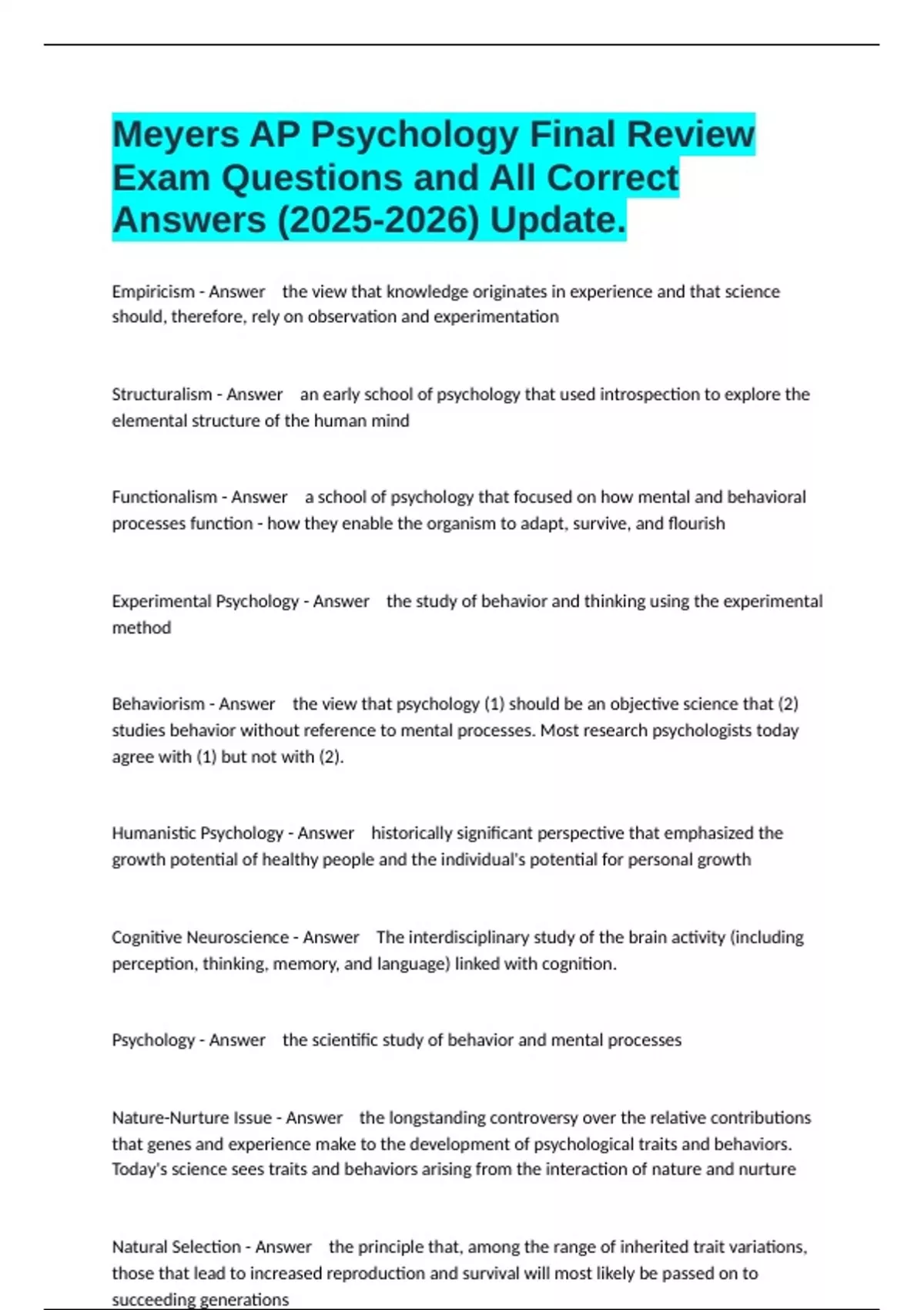 Psychology - Answer the scientific study of behavior and mental processes