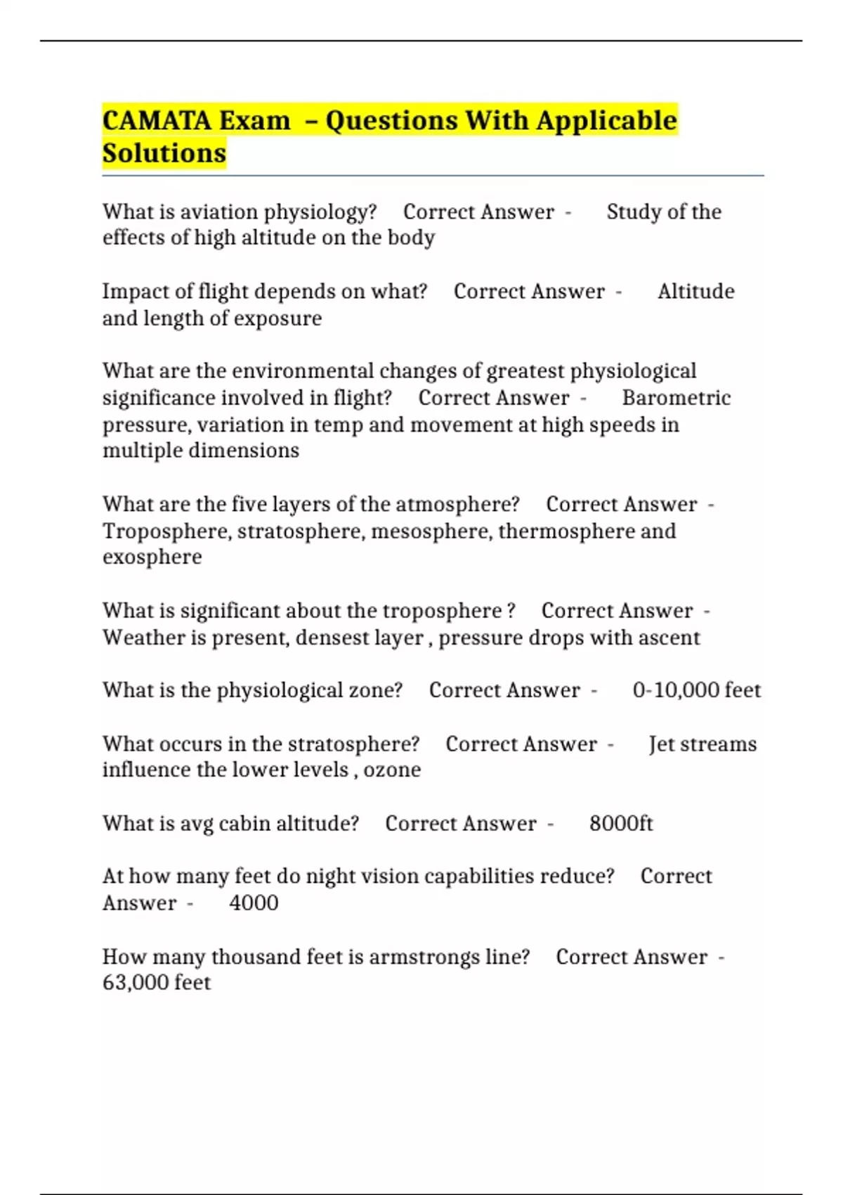 CAMATA Exam – Questions With Applicable Solutions