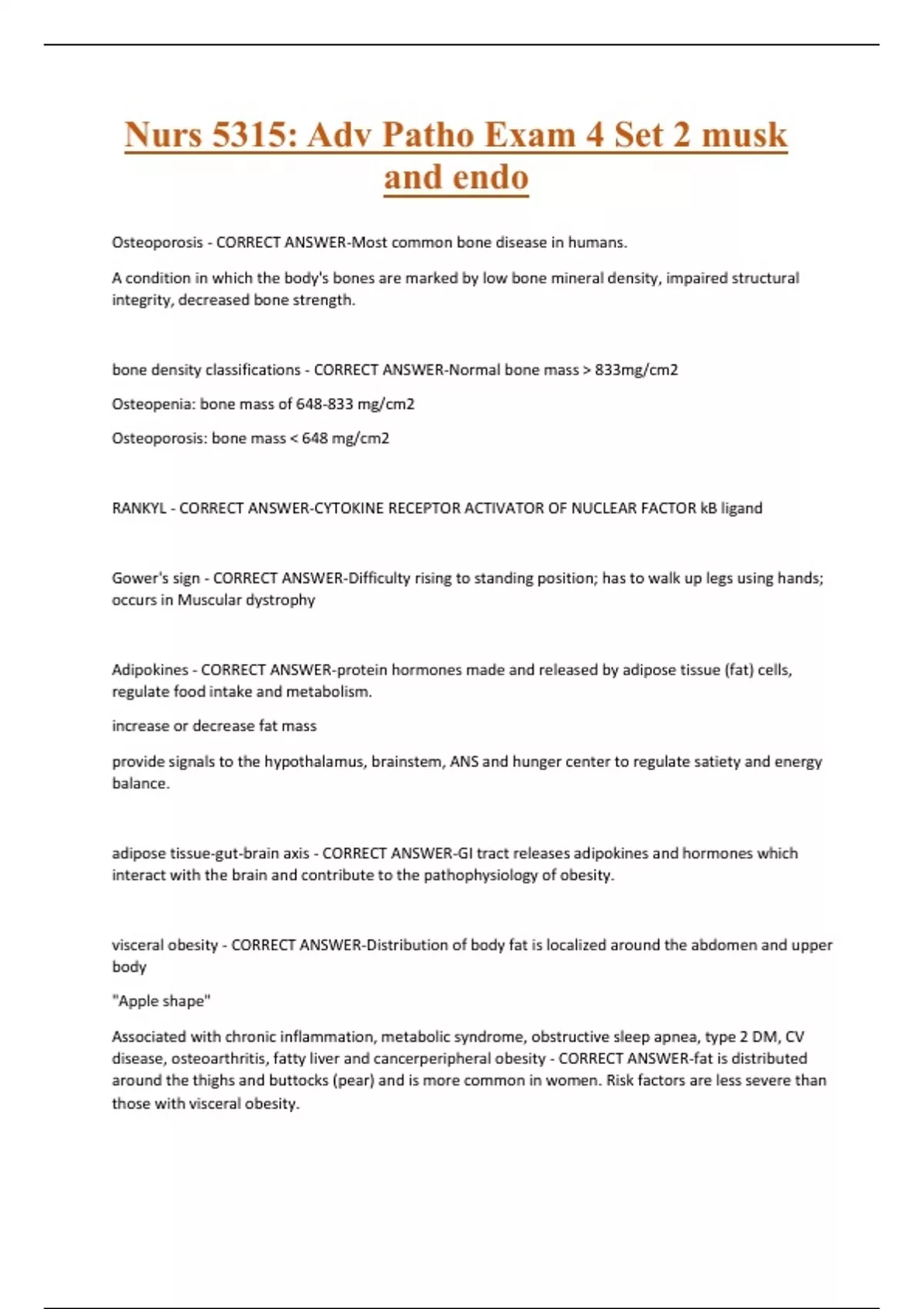 Nurs 5315: Advanced Pathology Exam 4 Set 2 musk and endo
