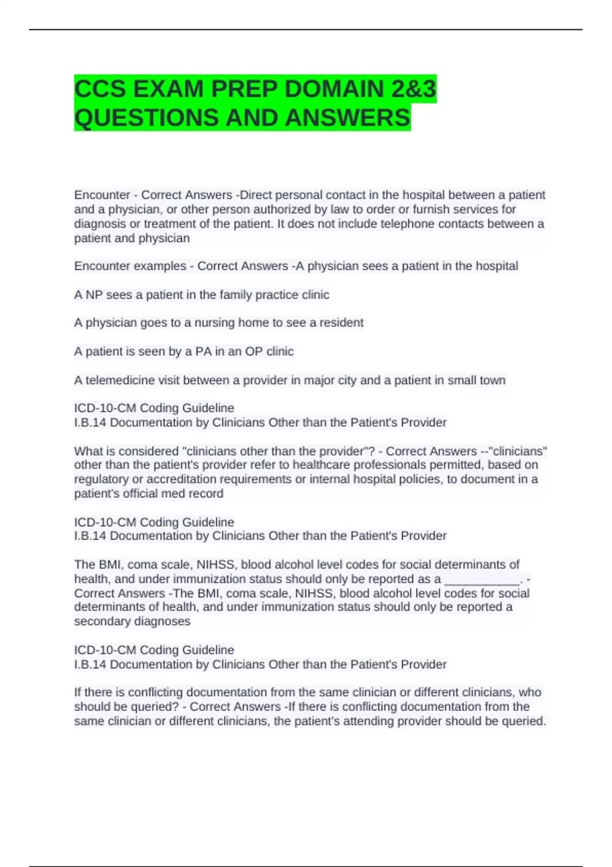 CCS EXAM PREP DOMAIN 2&3 QUESTIONS AND ANSWERS