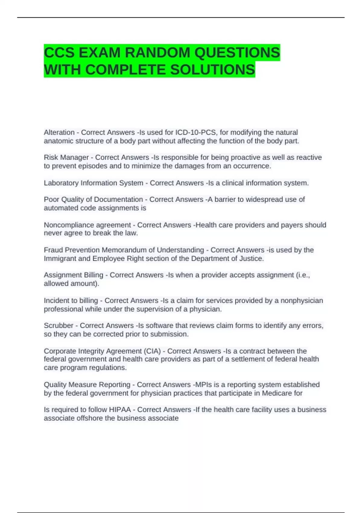 CCS EXAM RANDOM QUESTIONS WITH COMPLETE SOLUTIONS