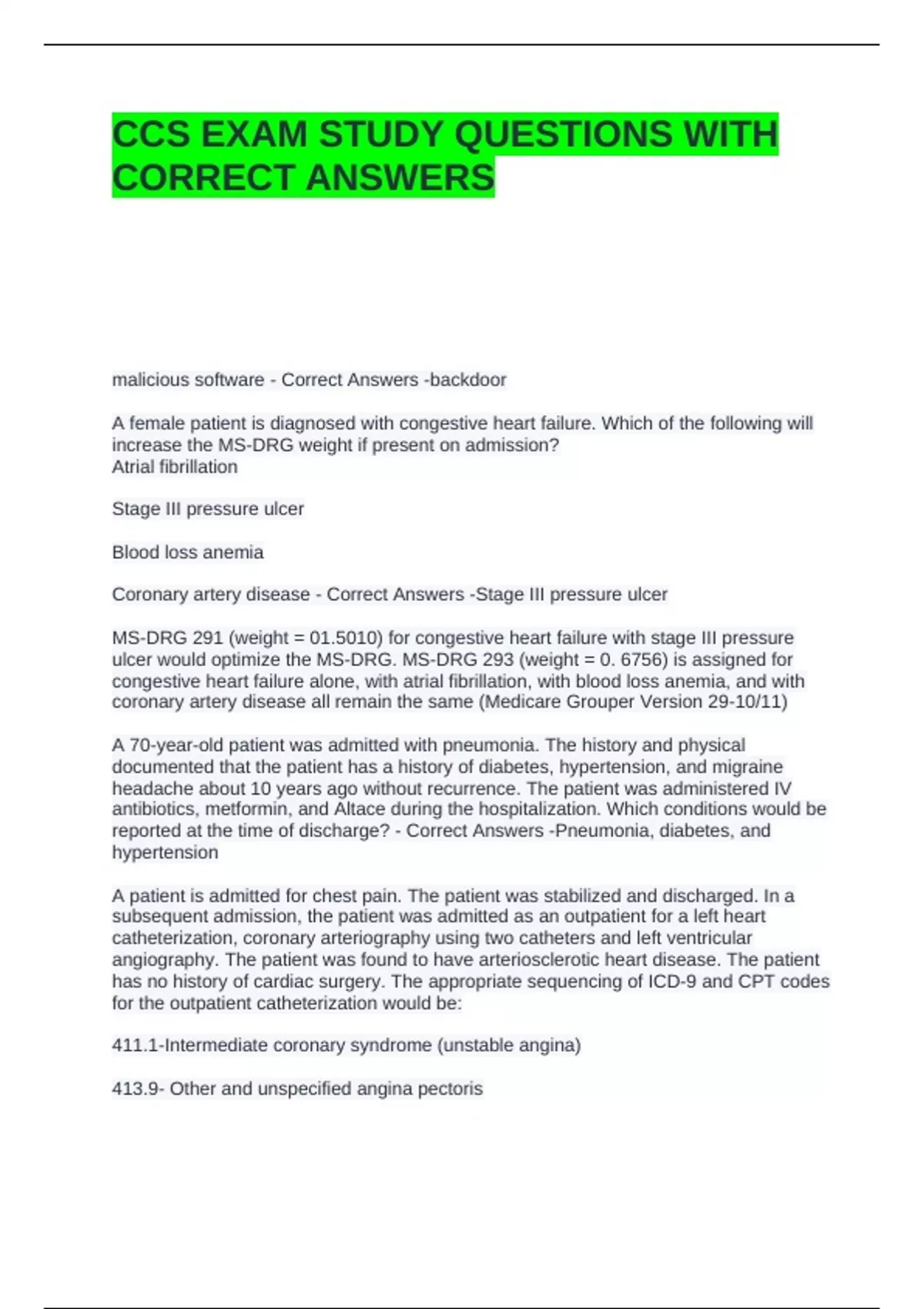 CCS EXAM STUDY QUESTIONS WITH