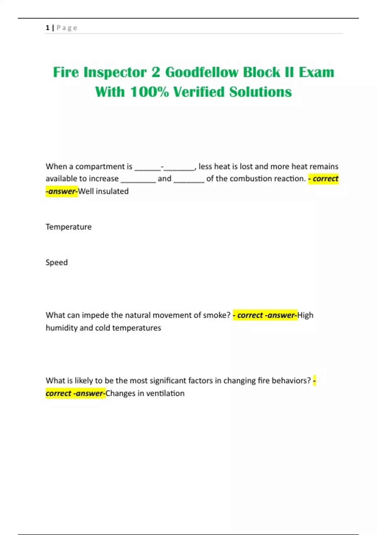 Fire Inspector 2 Goodfellow Block II Exam With 100% Verified Solutions
