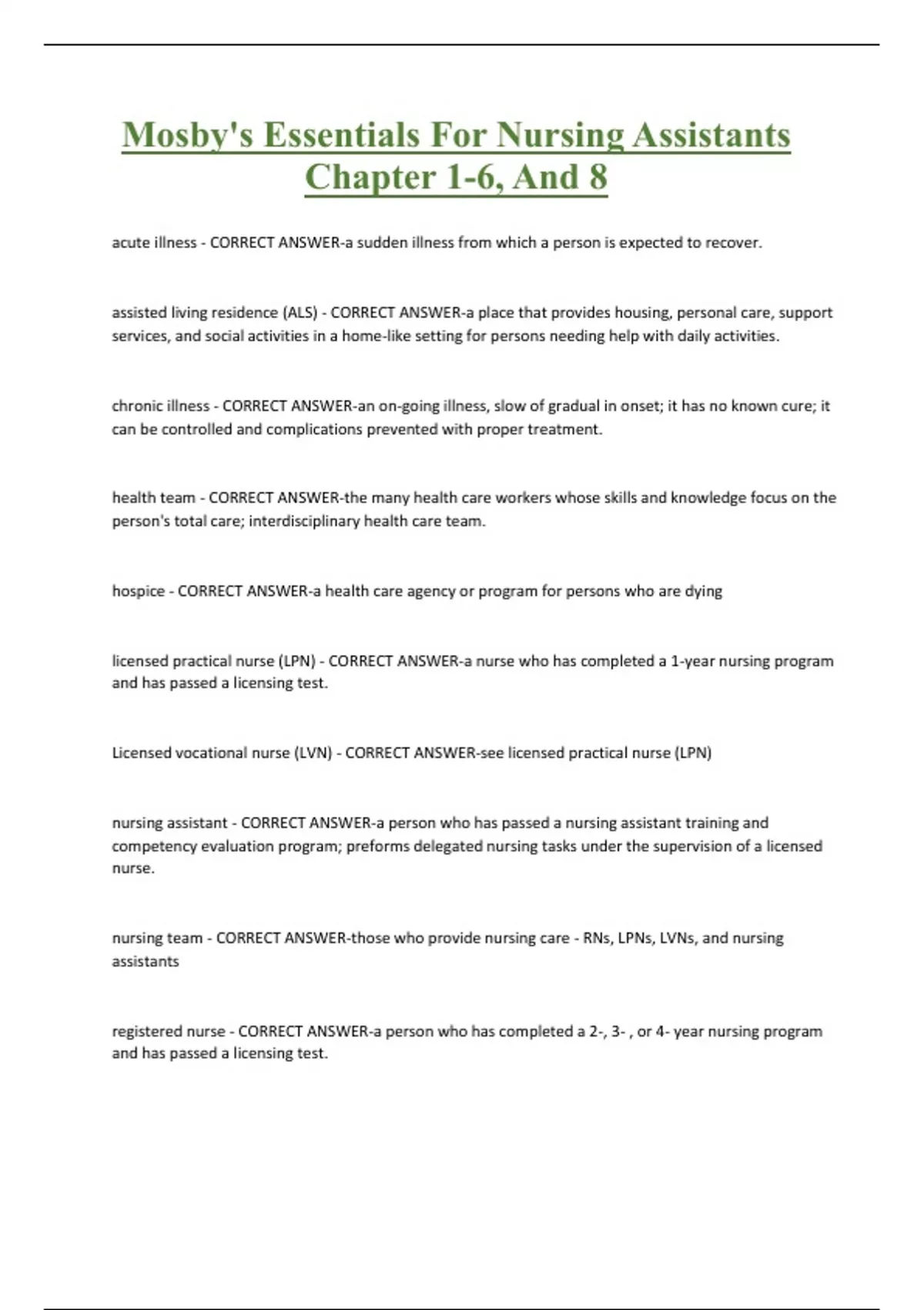 Mosby's Essentials For Nursing Assistants Chapter 1-6, And 8