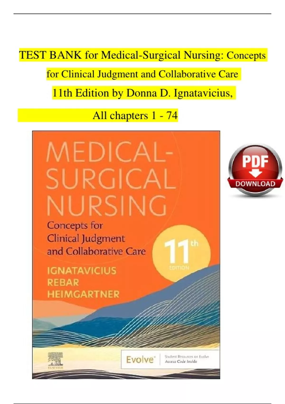 TEST BANK for Medical-Surgical Nursing: Concepts for Clinical Judgment and Collaborative Care 11th Edition by Donna D. Ignatavicius, All chapters 1 - 74