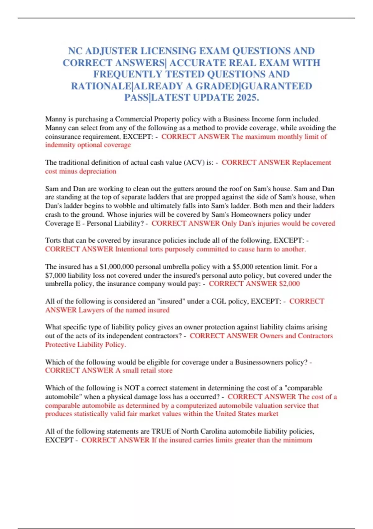 CORRECT ANSWERS| ACCURATE REAL EXAM WITH