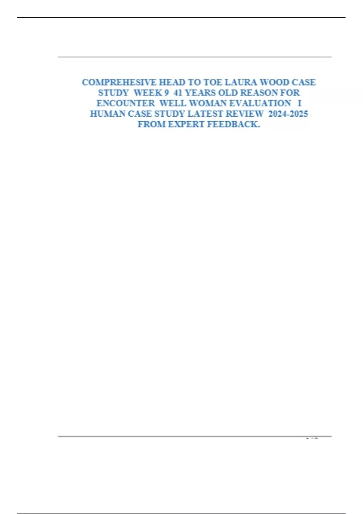 COMPREHESIVE HEAD TO TOE LAURA WOOD CASE STUDY WEEK 9 41 YEARS OLD REASON FOR ENCOUNTER WELL WOMAN EVALUATION I HUMAN CASE STUDY LATEST REVIEW FROM EXPERT FEEDBACK.