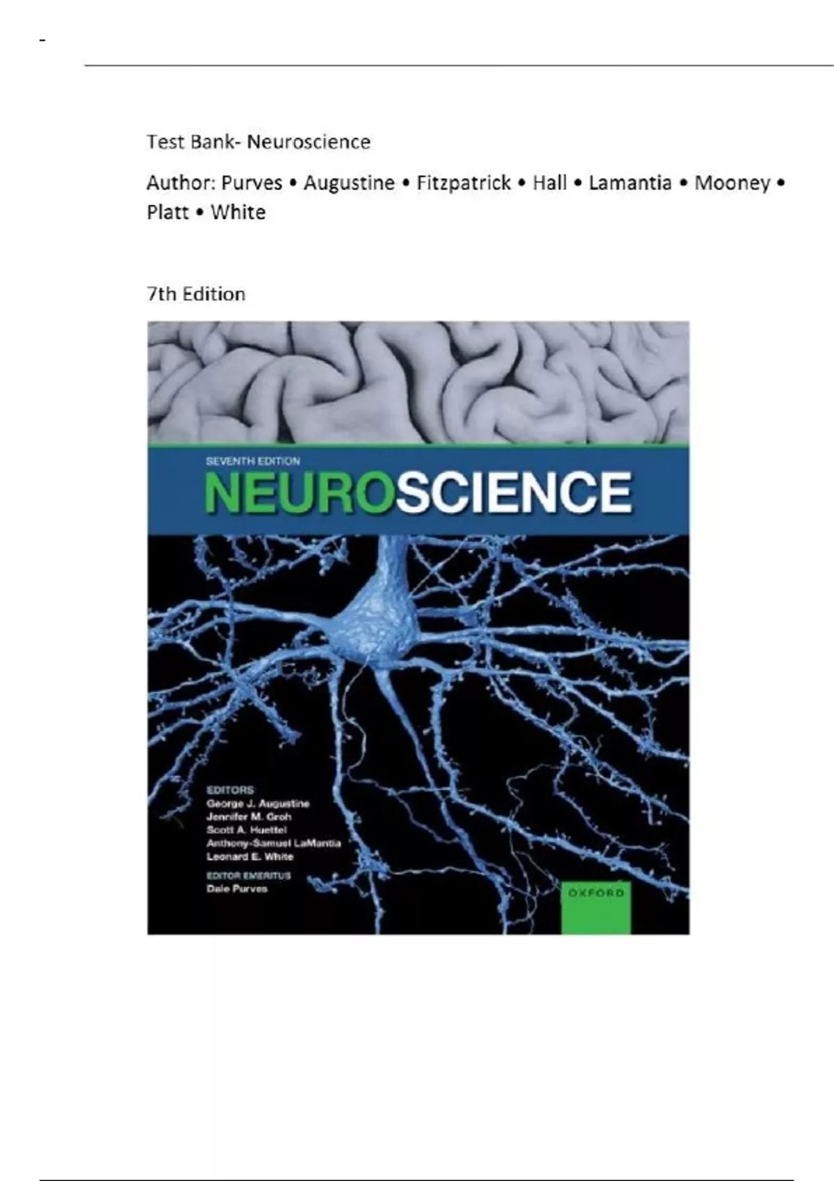 Test Bank For Neuroscience 7th Edition by Purves, All Chapters 1-34 | Latest Edition 2025
