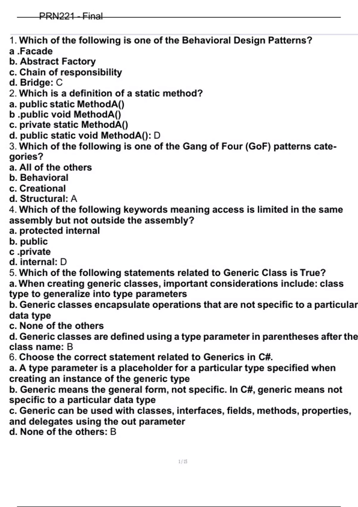 1. Which of the following is one of the Behavioral Design Patterns?