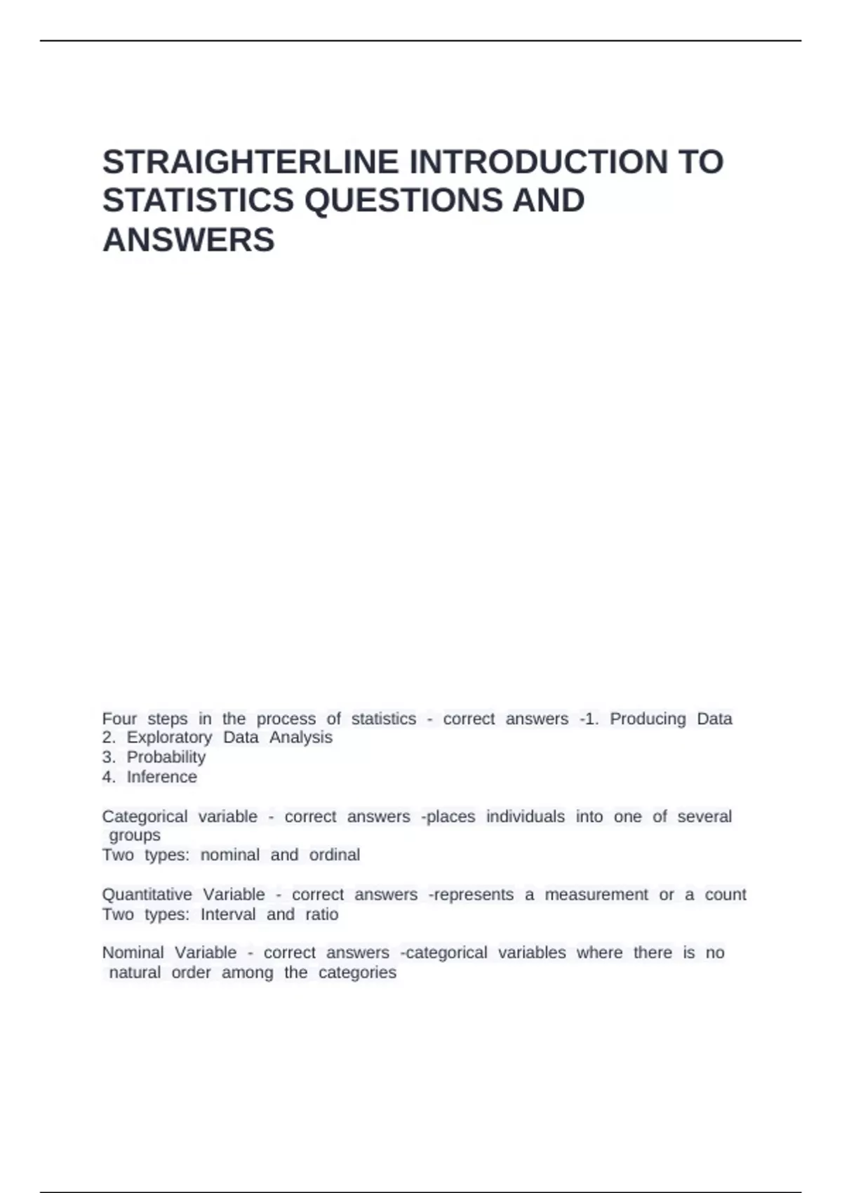 Four qsteps qin qthe qprocess qof qstatistics q- qcorrect qanswers q-1. qProducing qData