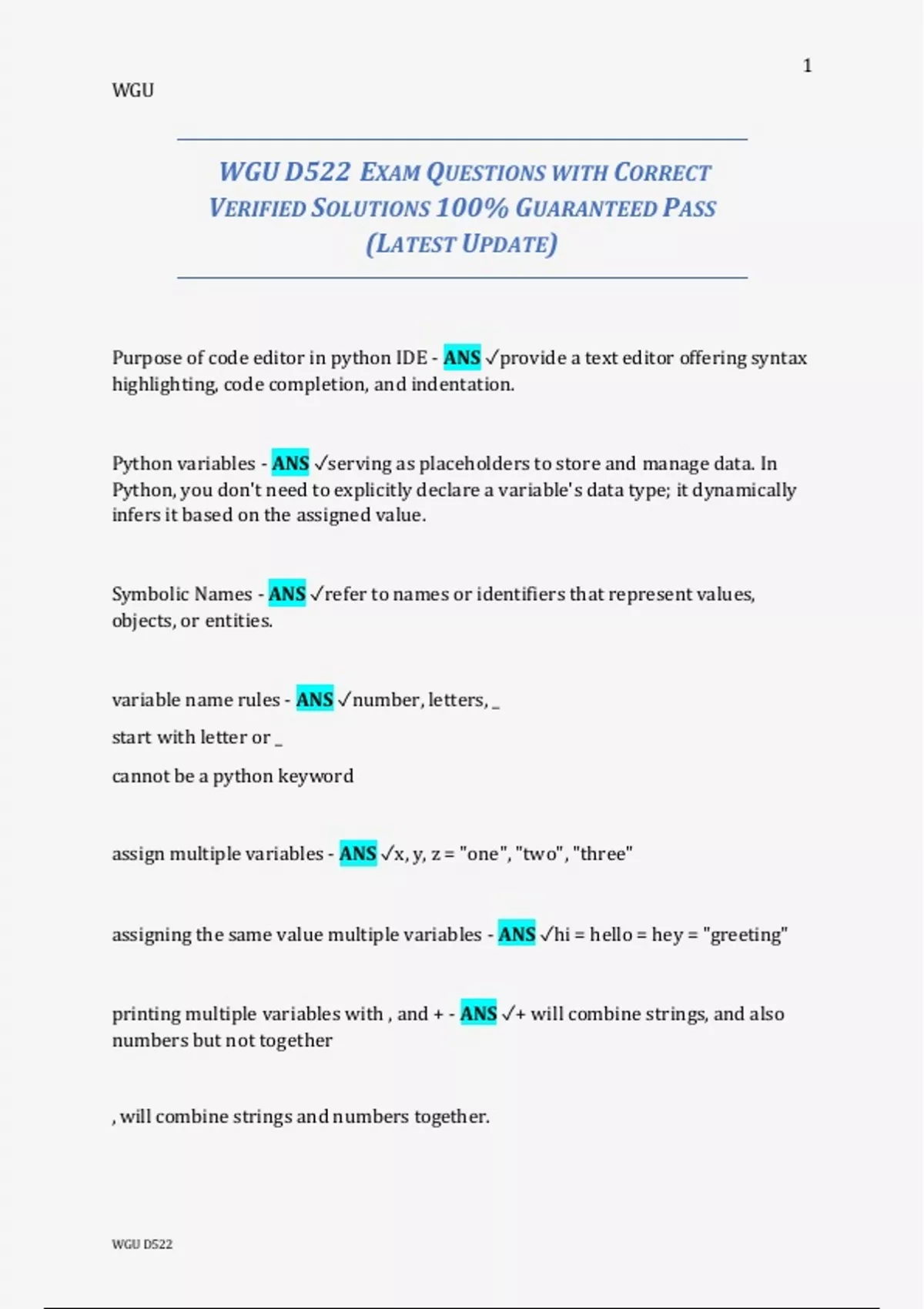 Ace your WGU D522 exam with this expertly crafted study pack featuring verified questions and 100% correct answers. Updated for 2025/2026, this comprehensive guide aligns with WGU curriculum and is ideal for students aiming to pass confidently on the first try.