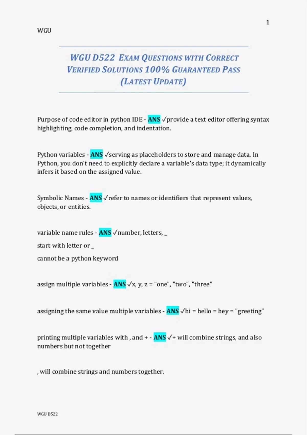 Ace your WGU D522 exam with this fully updated 2025/2026 question and answer bank. Contains 100% correct, verified solutions designed to help Western Governors University students pass confidently. Covers data-driven decision-making, predictive modeling, and analytical frameworks. Ideal for working professionals and graduate students seeking reliable exam prep.