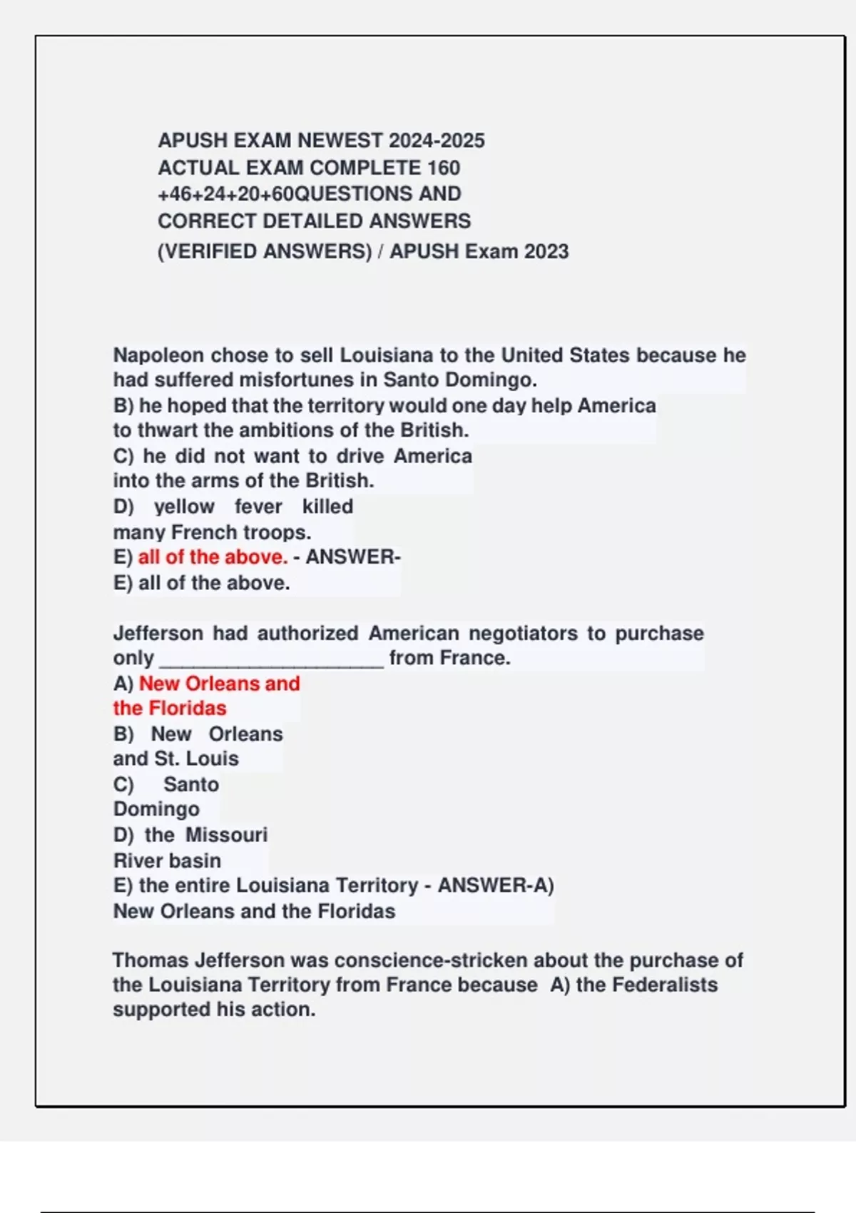(VERIFIED ANSWERS) / APUSH Exam 2023