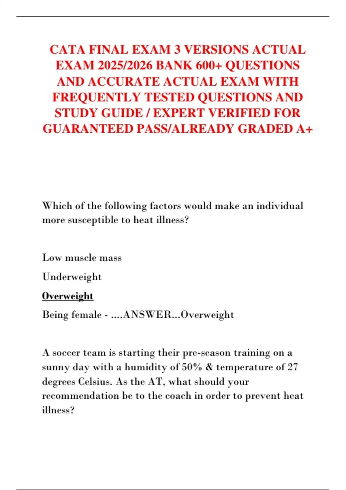 CATA FINAL EXAM 3 VERSIONS ACTUAL EXAM 2025/2026 BANK 600+ QUESTIONS AND ACCURATE ACTUAL EXAM WITH FREQUENTLY TESTED QUESTIONS AND STUDY GUIDE / EXPERT VERIFIED FOR GUARANTEED PASS/ALREADY GRADED A+
