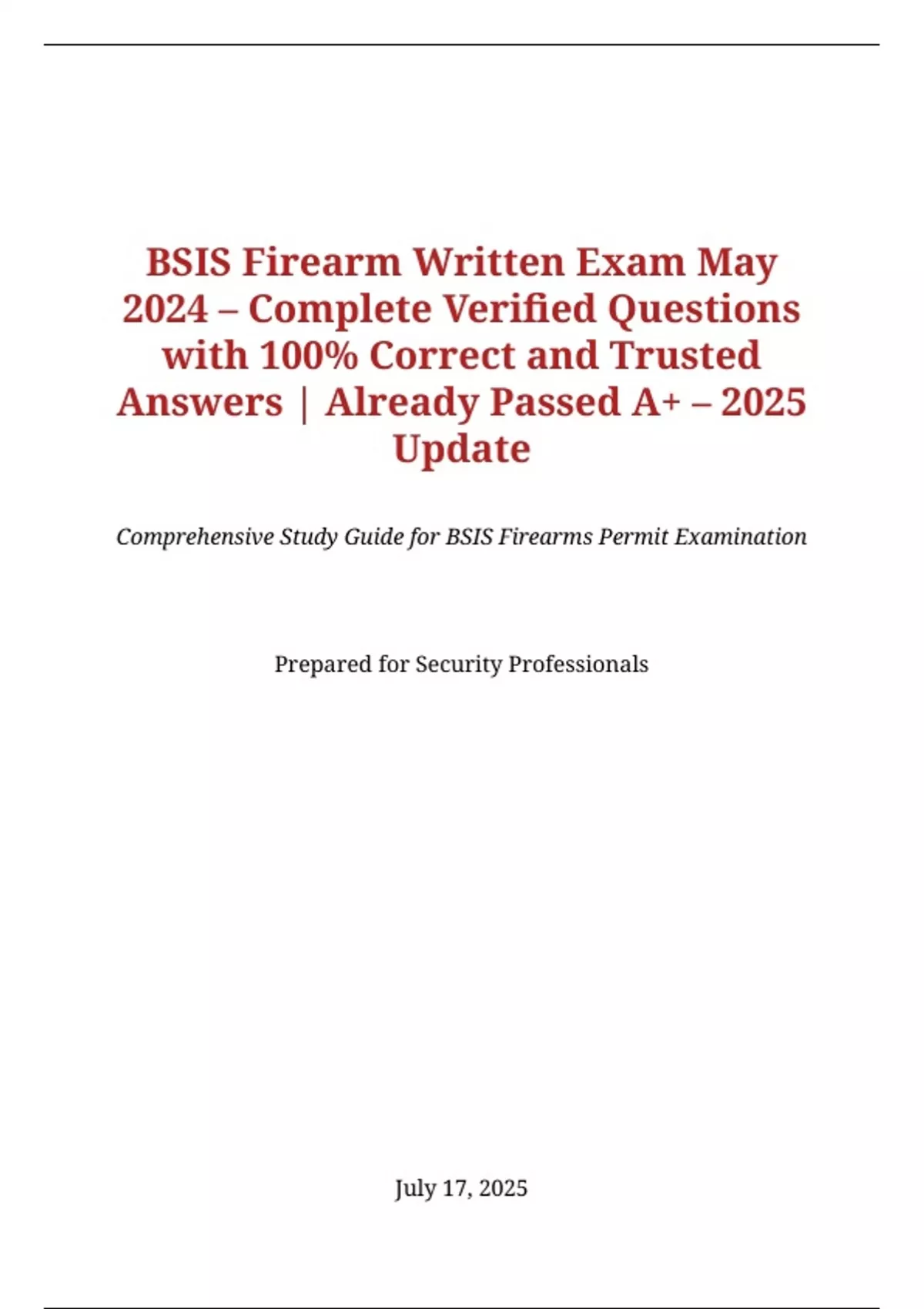 tigative Services (BSIS) Firearm Written Exam, updated for 2025. It contains 100