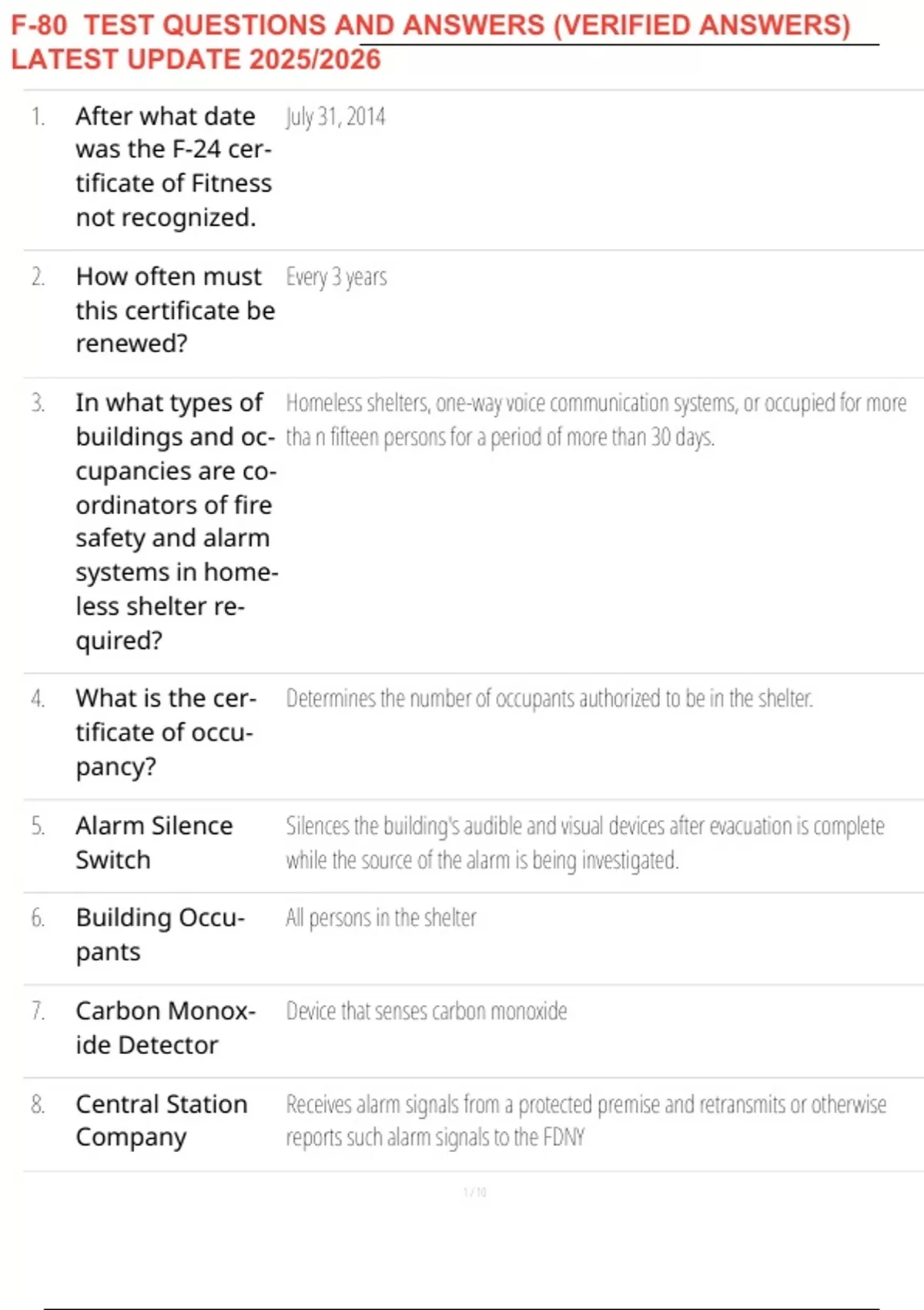 F-80 TEST QUESTIONS AND ANSWERS (VERIFIED ANSWERS) LATEST UPDATE 2025/2026
