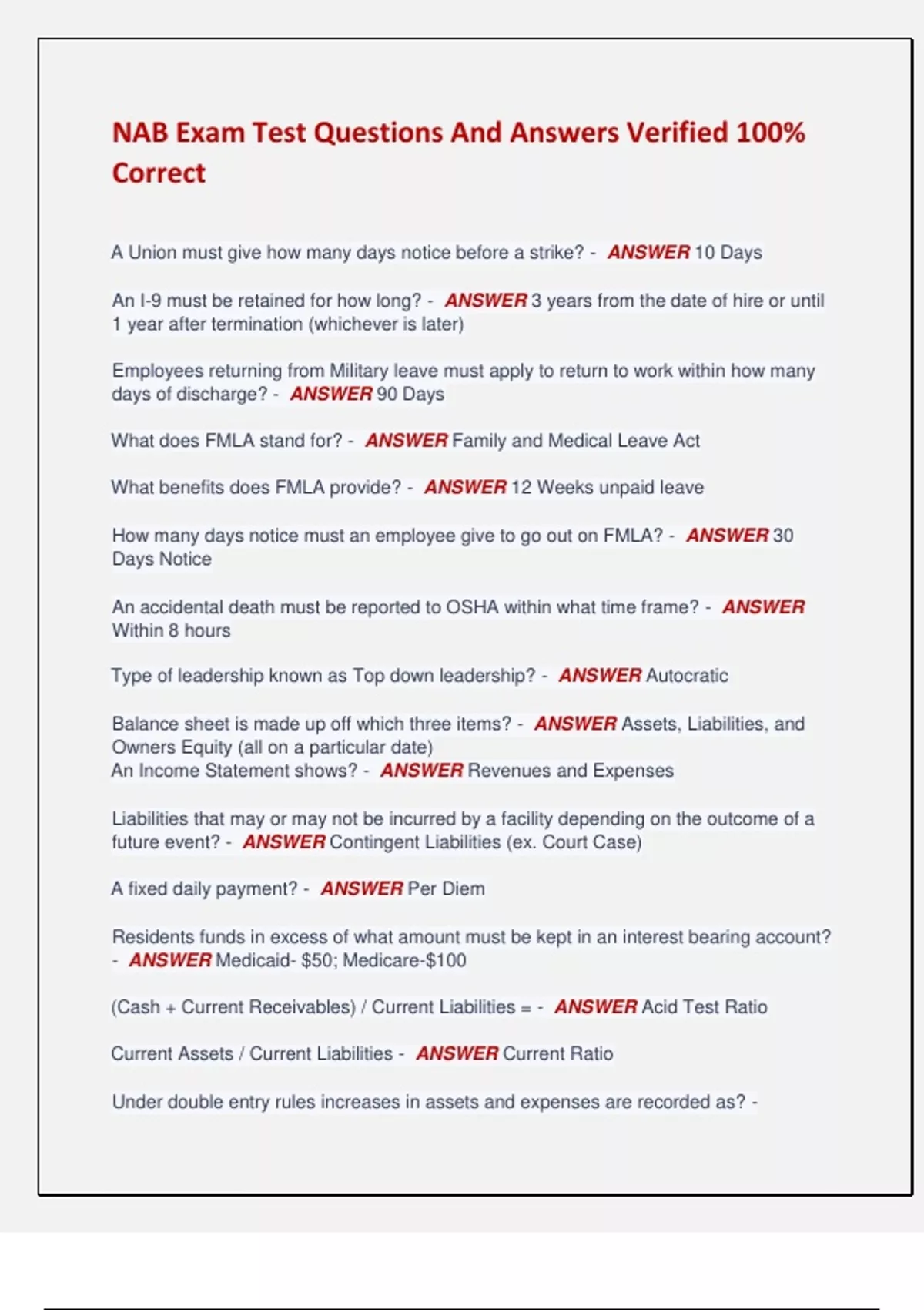 What does FMLA stand for? - ANSWER Family and Medical Leave Act