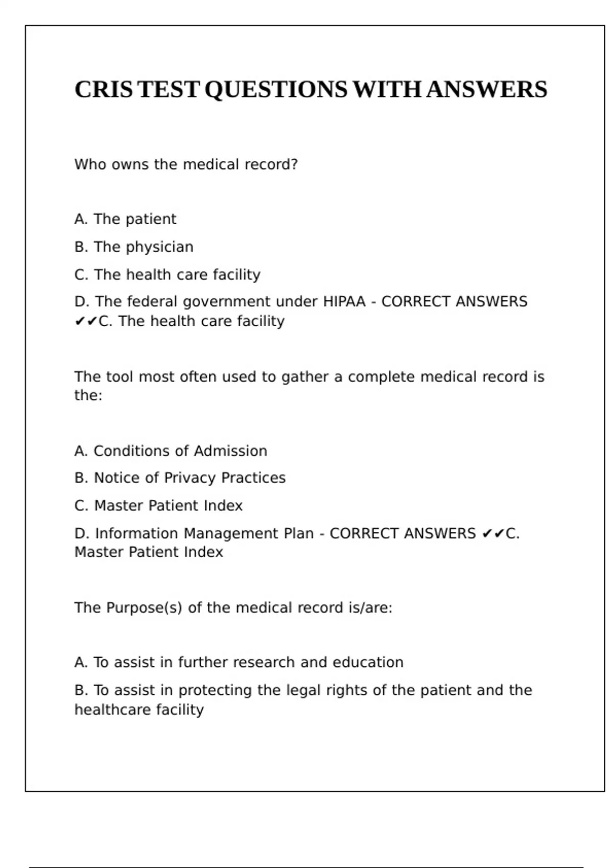CRIS TEST QUESTIONS WITH ANSWERS