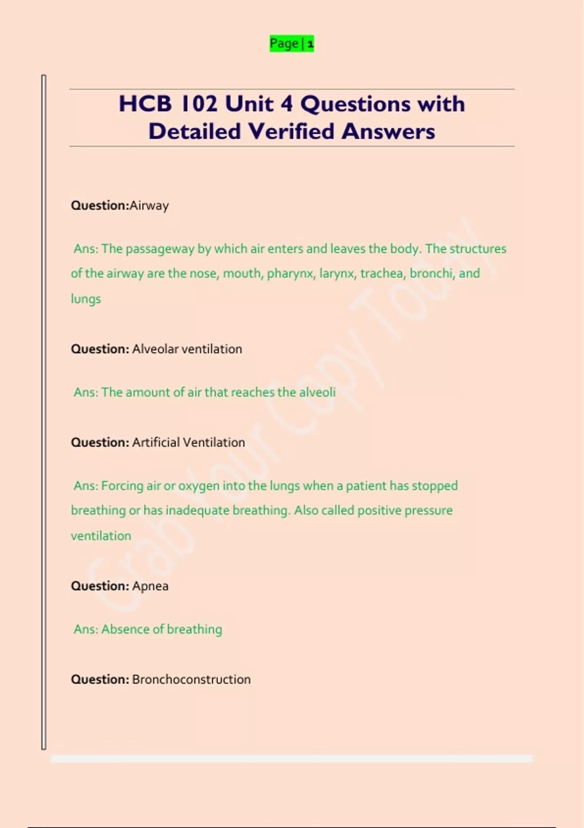 HCB 102 Unit 4 Questions with Detailed Verified AnswersHCB 102 Unit 4 Questions with Detailed Verified Answers