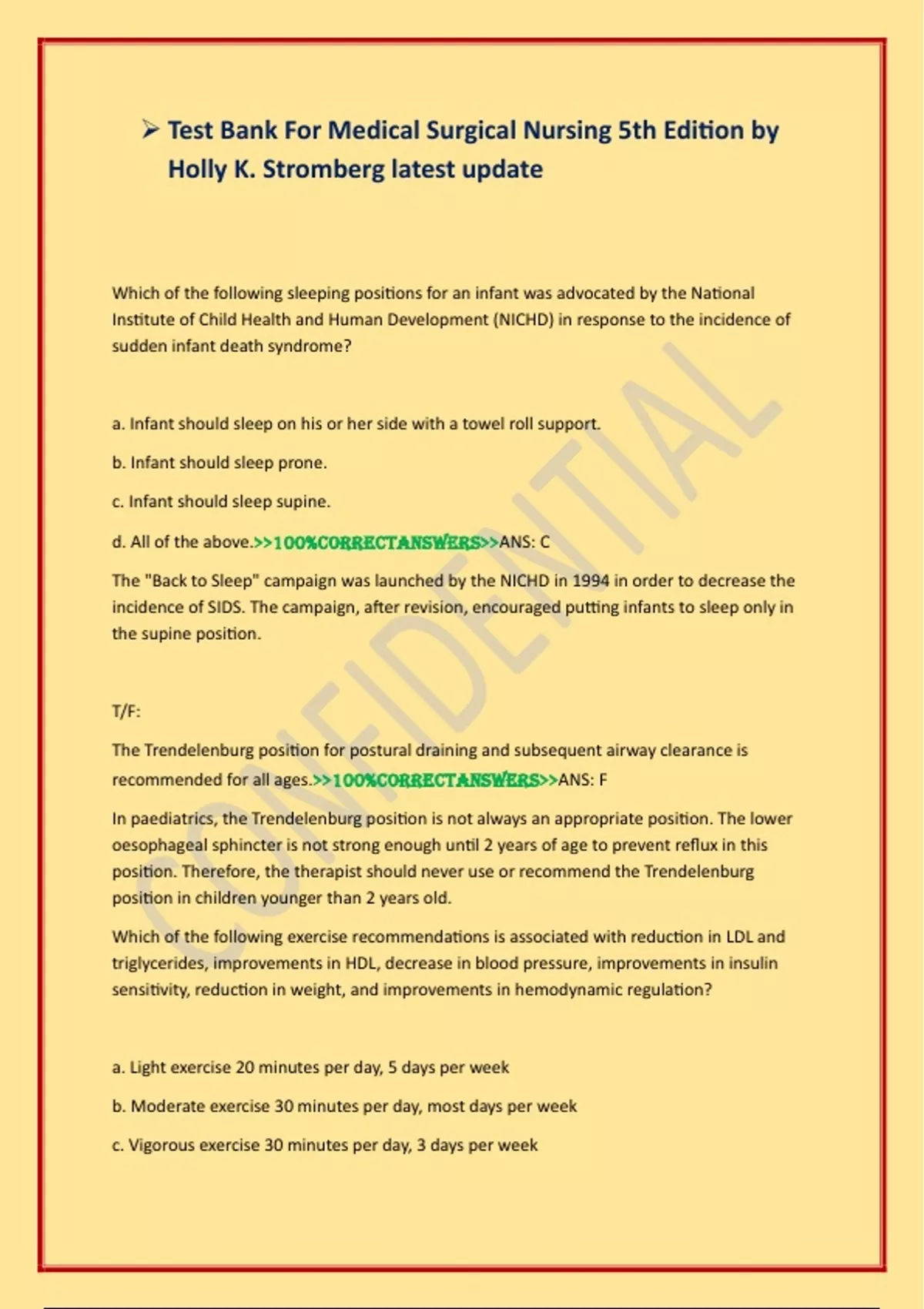 ➢ Test Bank For Medical Surgical Nursing 5th Edition by