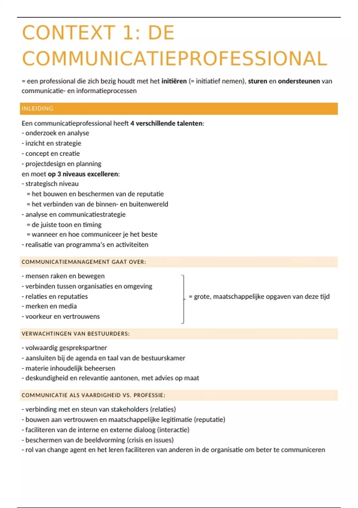 Samenvatting Context 1: de communicatieprofessional (1e jaar communicatie Artevelde)