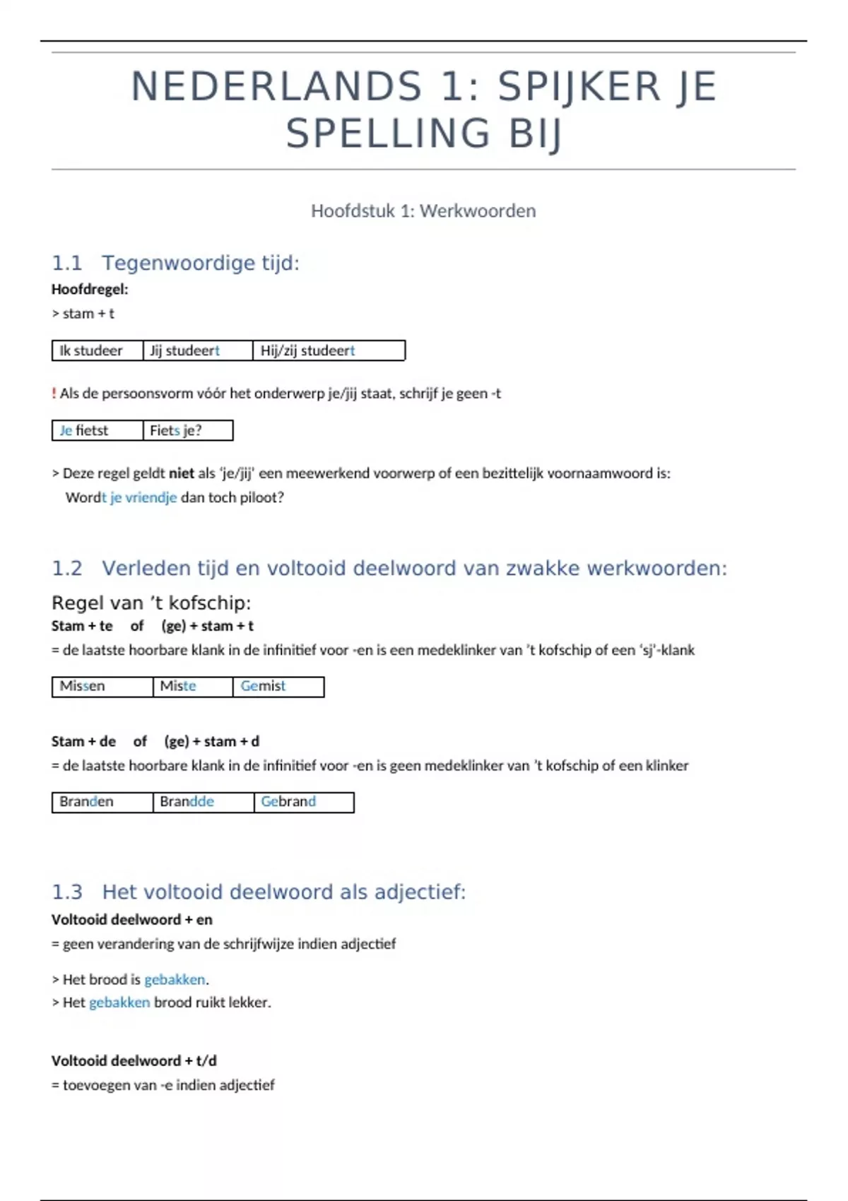 1.2 Verleden tijd en voltooid deelwoord van zwakke werkwoorden: