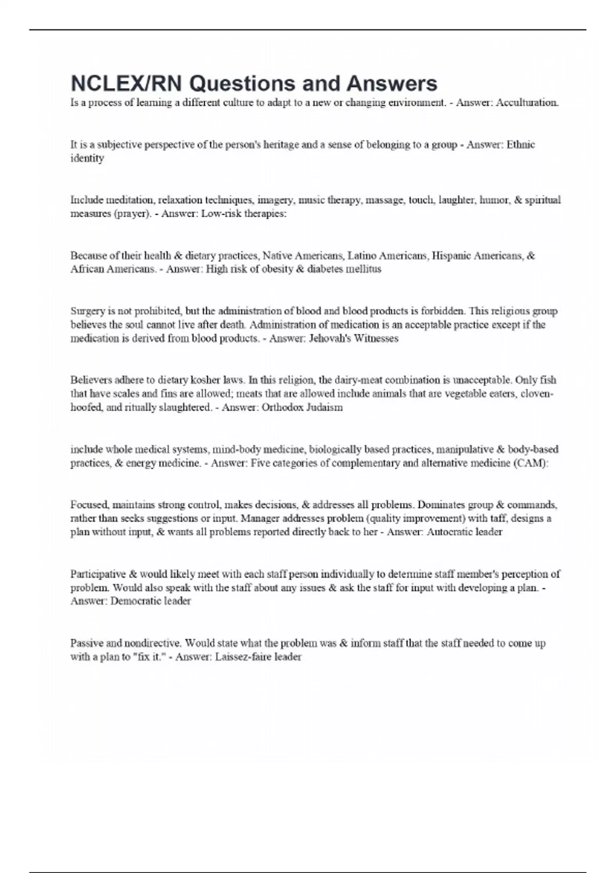 NCLEX/RN Questions and Answers