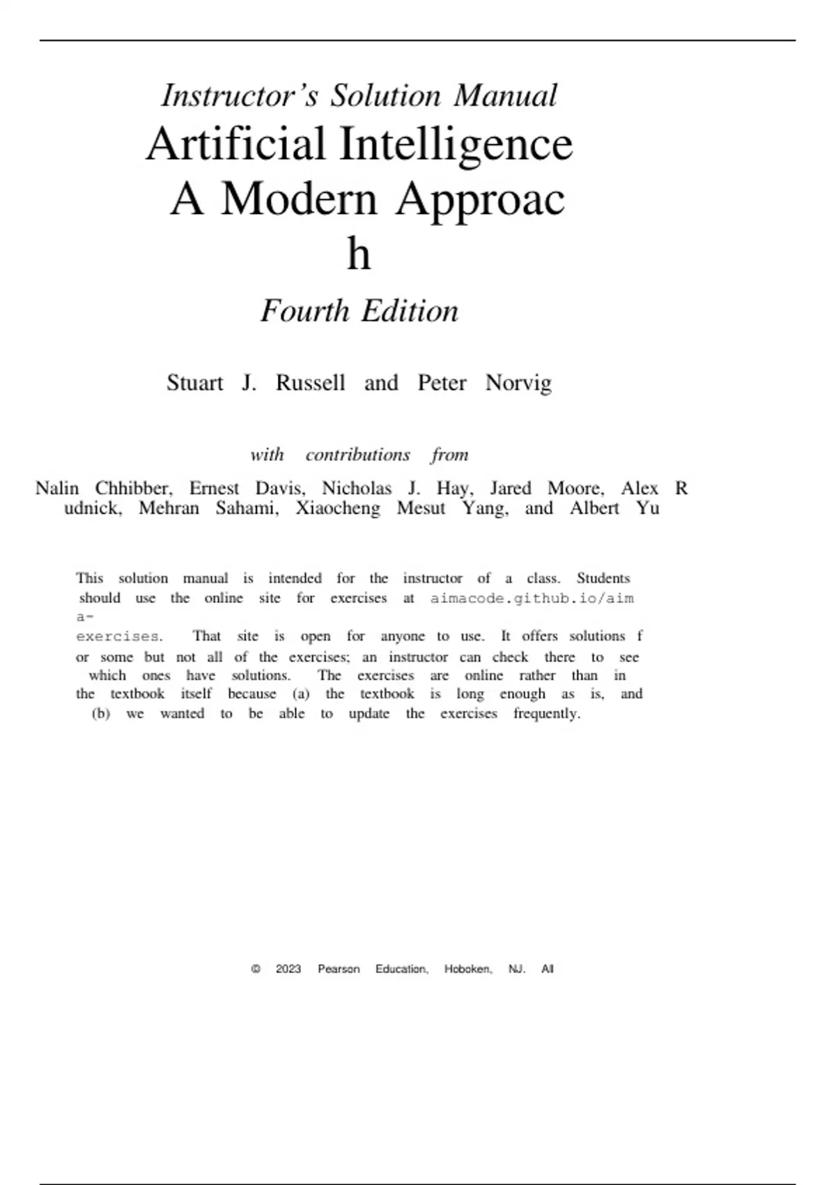 INSTRUCTORS SOLUTION MANUAL Artificial Intelligence: A Modern Approach 4th Edition by Stuart Russell , Peter Norvig ISBN:978-0134610993 ALL CHAPTERS COVERED YOUR ULTIMATE GUIDE 100% VERIFIED A+ GRADE ASSURED!!!!! NEW LATEST UPDATE!!!!!!!