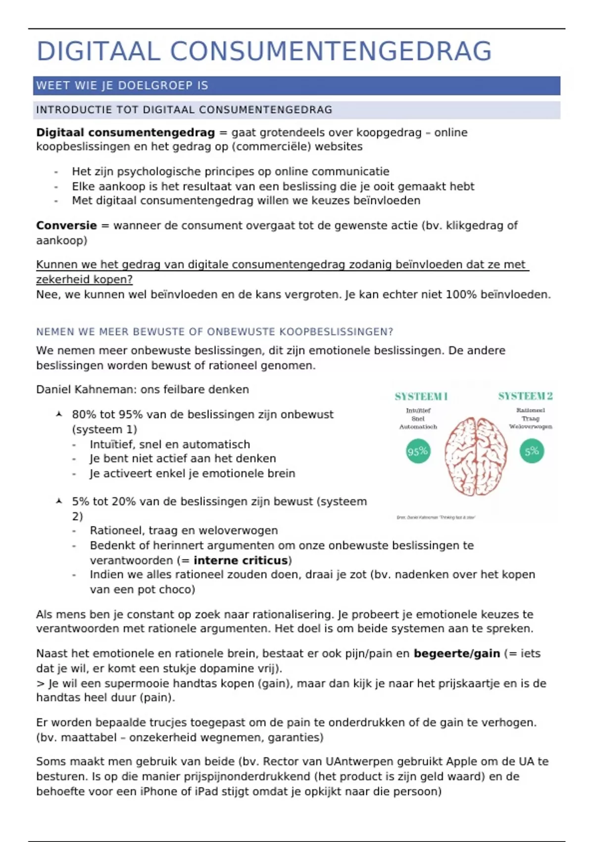 Volledige samenvatting Digitaal consumentengedrag (15/20) - 2e jaar communicatie Artevelde