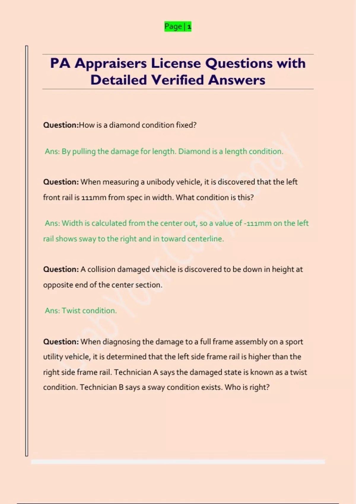 PA Appraisers License Questions with Detailed Verified Answers