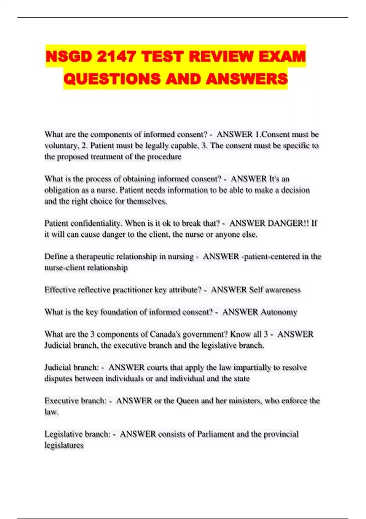 NSGD 2147 TEST REVIEW EXAM QUESTIONS AND ANSWERS