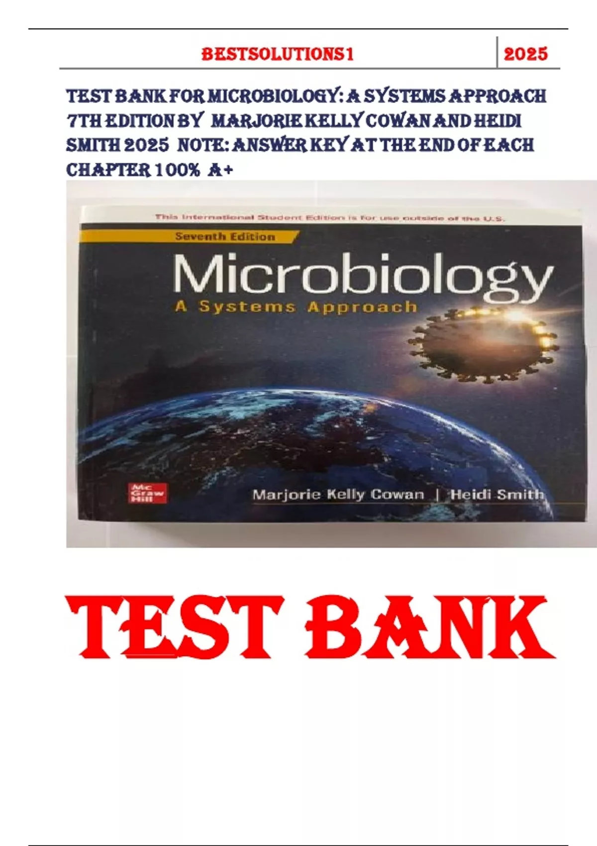 TEST BANK for Microbiology: A Systems Approach 7th Edition by Marjorie Kelly Cowan and Heidi smith 2025 NOTE: Answer Key At The end Of Each Chapter 100% a+
