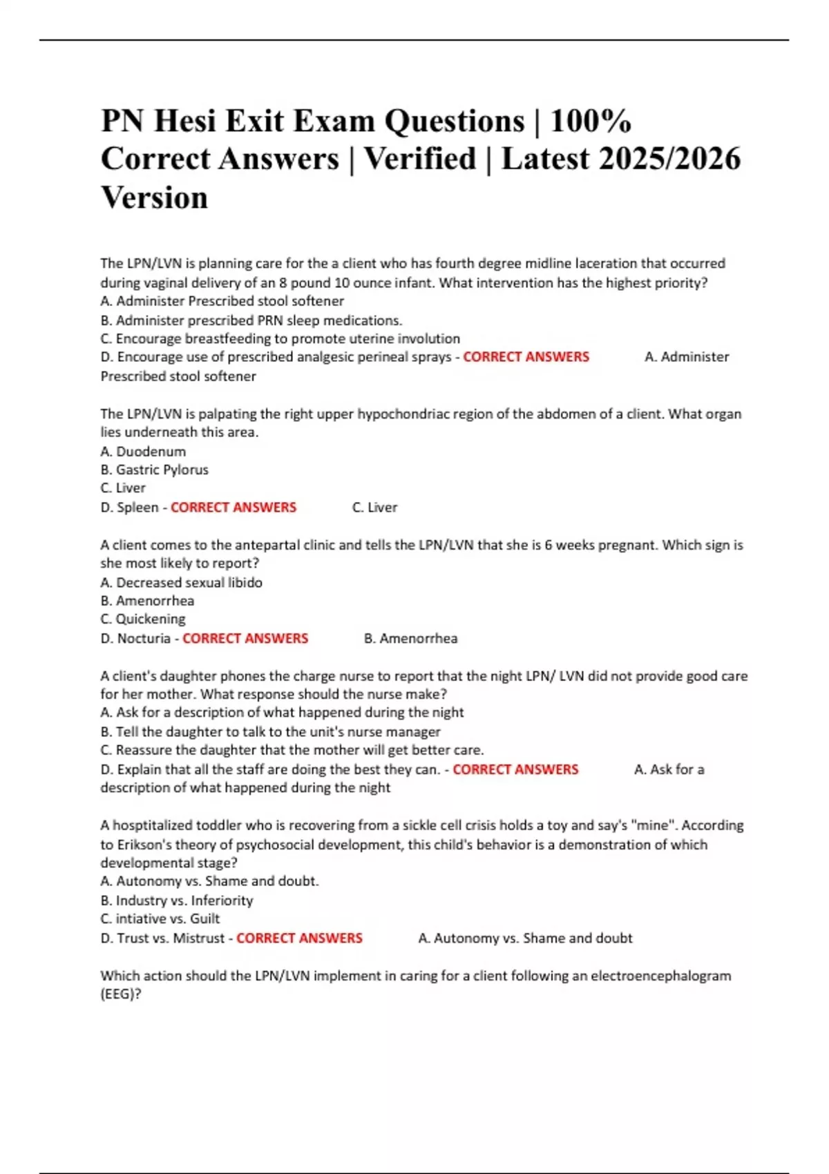 PN Hesi Exit Exam Questions | 100% Correct Answers | Verified | Latest 2025/2026 Version