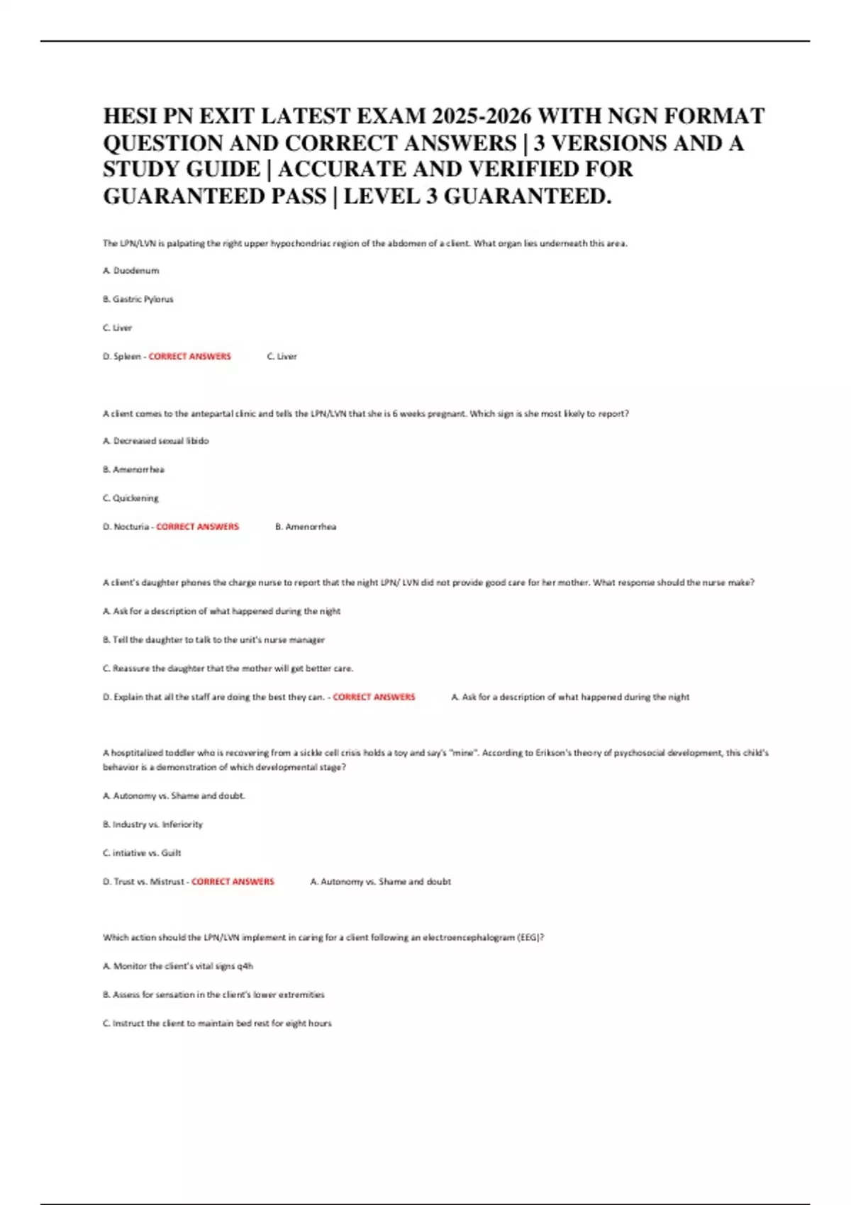 QUESTION AND CORRECT ANSWERS | 3 VERSIONS AND A