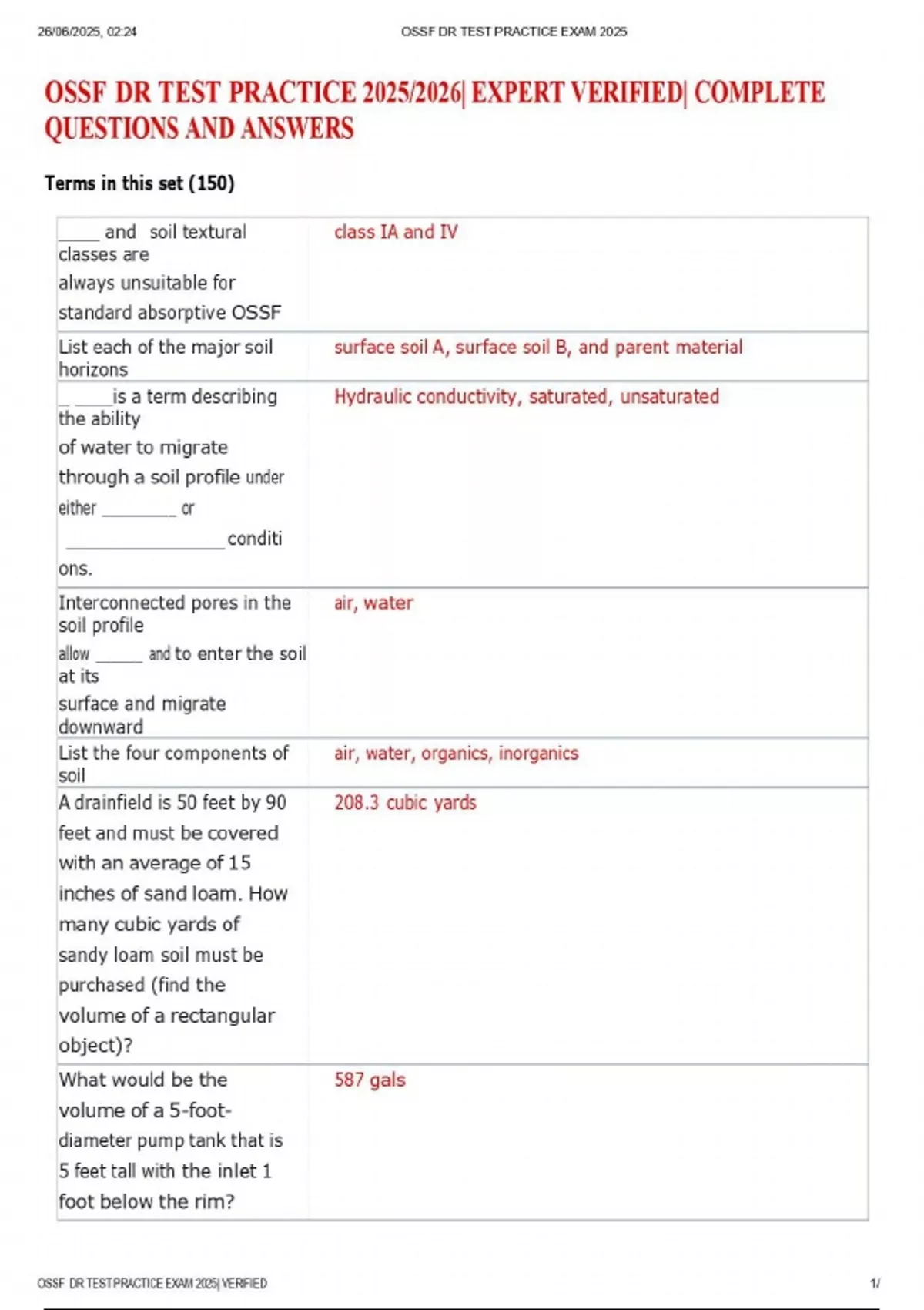 OSSF DR TEST PRACTICE EXPERT VERIFIED COMPLETE QUESTIONS AND ANSWERS