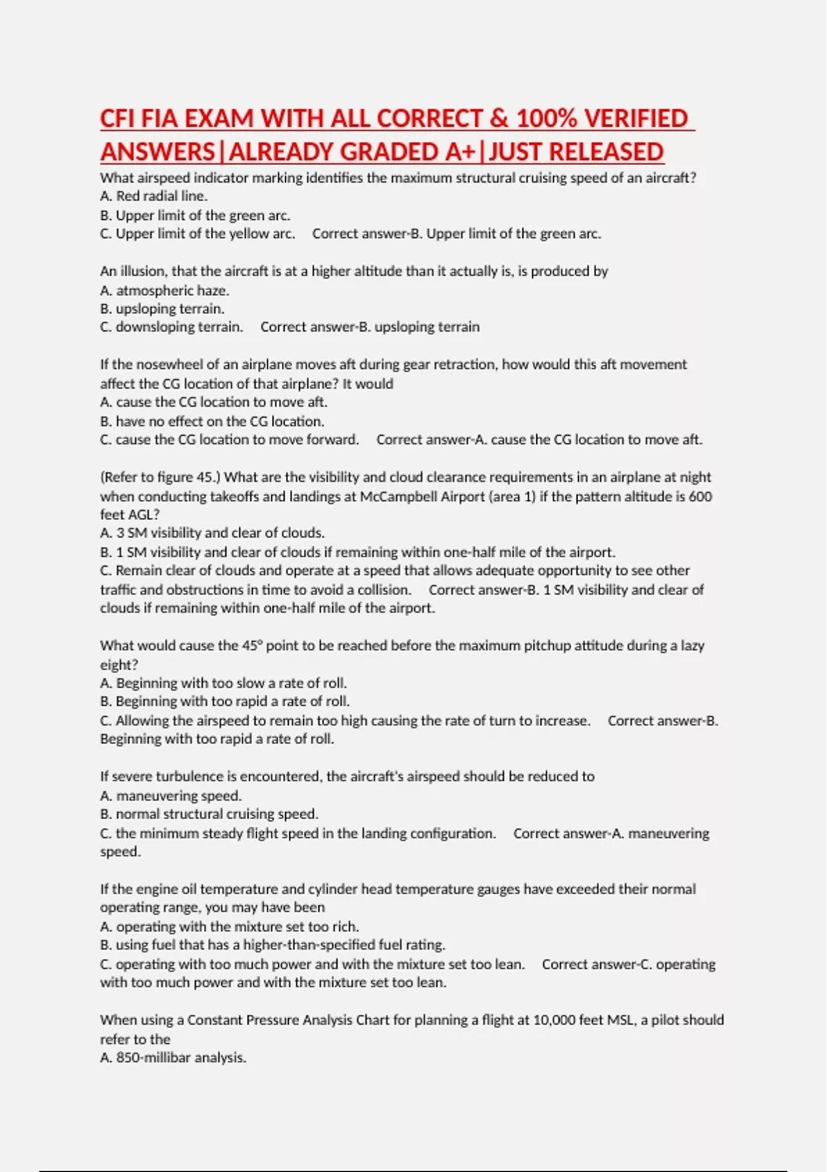 CFI FIA EXAM WITH ALL CORRECT & 100% VERIFIED ANSWERS|ALREADY GRADED A+|JUST RELEASED