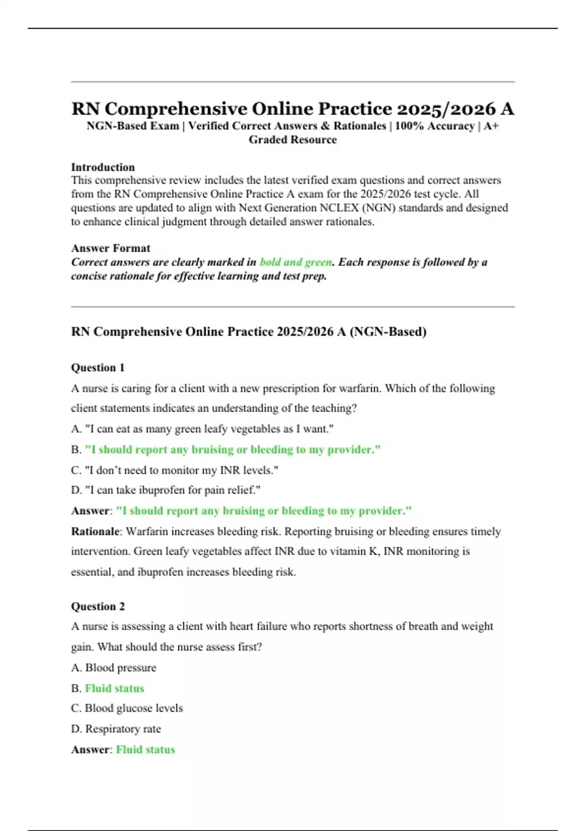 NGN-Based Exam | Verified Correct Answers & Rationales | 100% Accuracy | A+