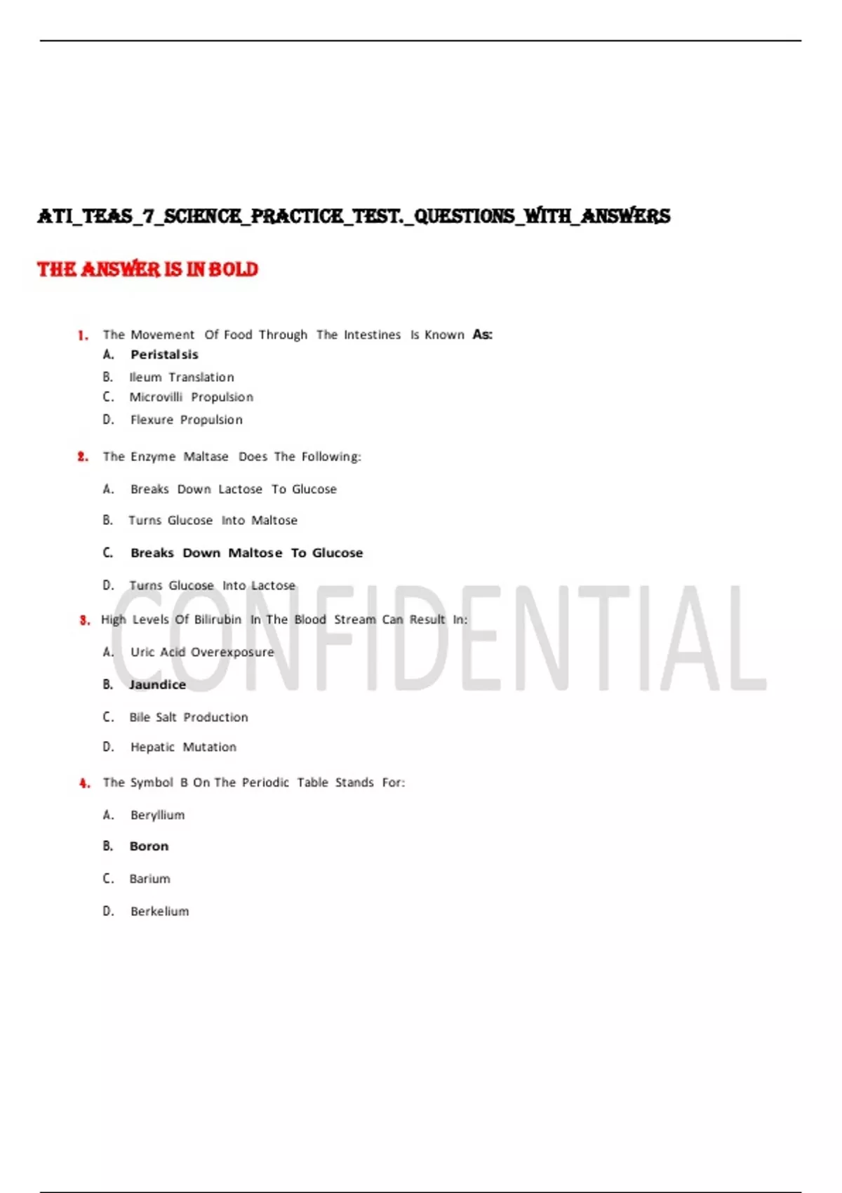 1. The Movement Of Food Through The Intestines Is Known As: