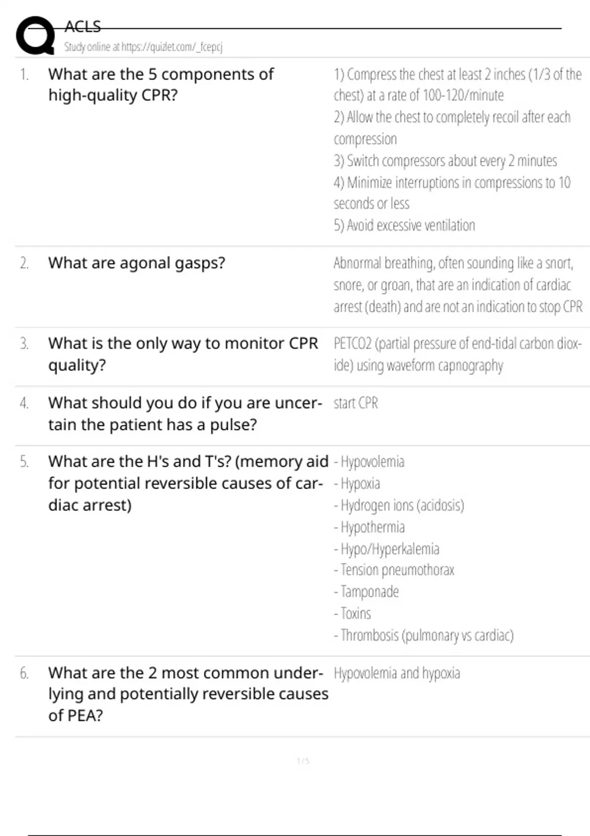 1. What are the 5 components of 1) Compress the chest at least 2 inches (1/3 of the