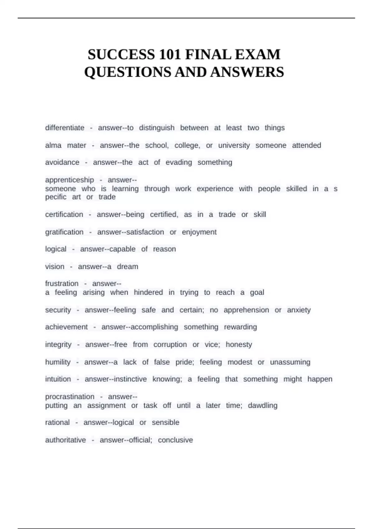 SUCCESS 101 FINAL EXAM QUESTIONS AND ANSWERS