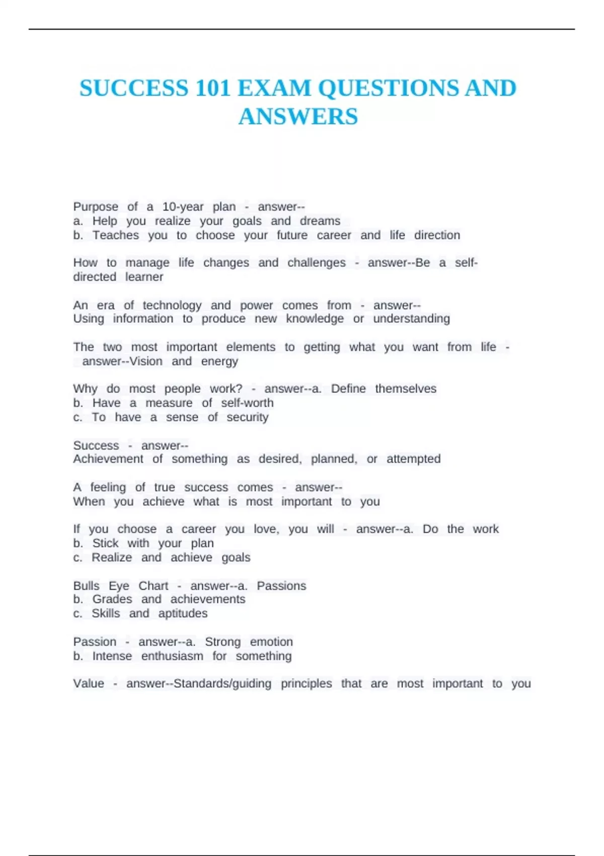SUCCESS 101 EXAM QUESTIONS AND