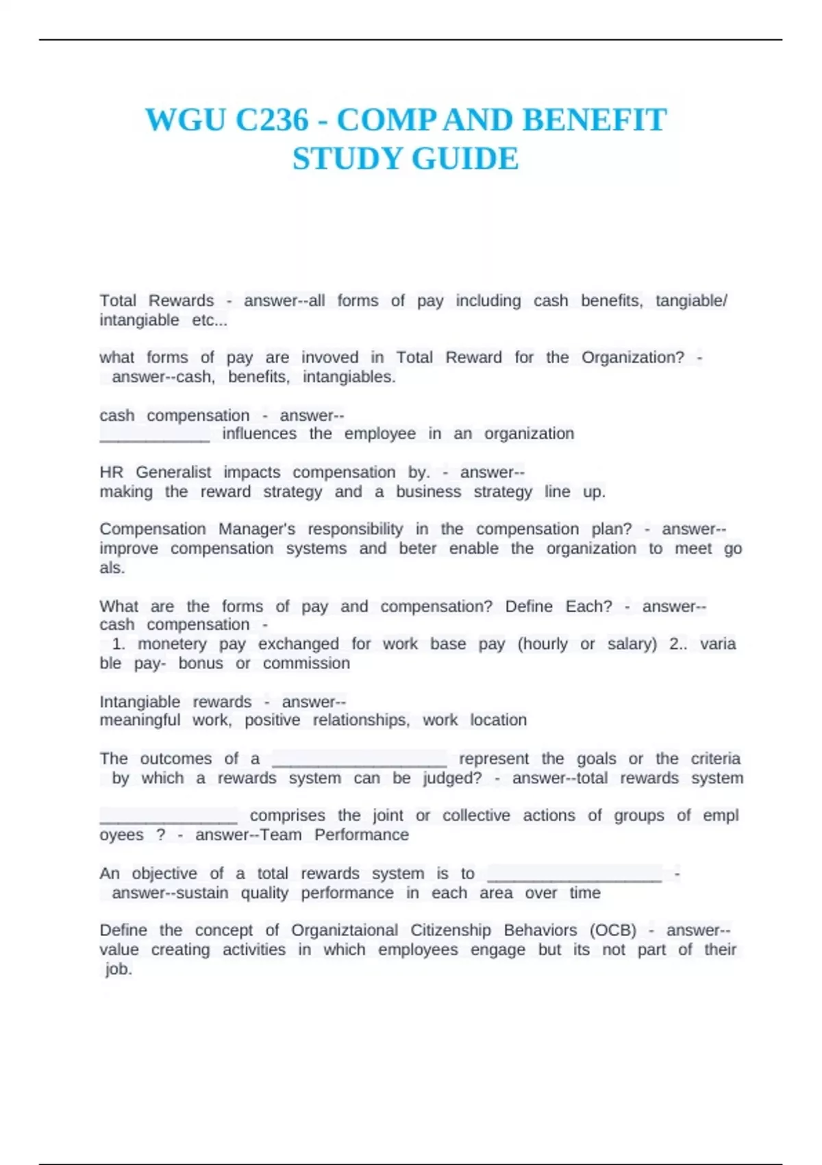 WGU C236 - COMP AND BENEFIT STUDY GUIDE