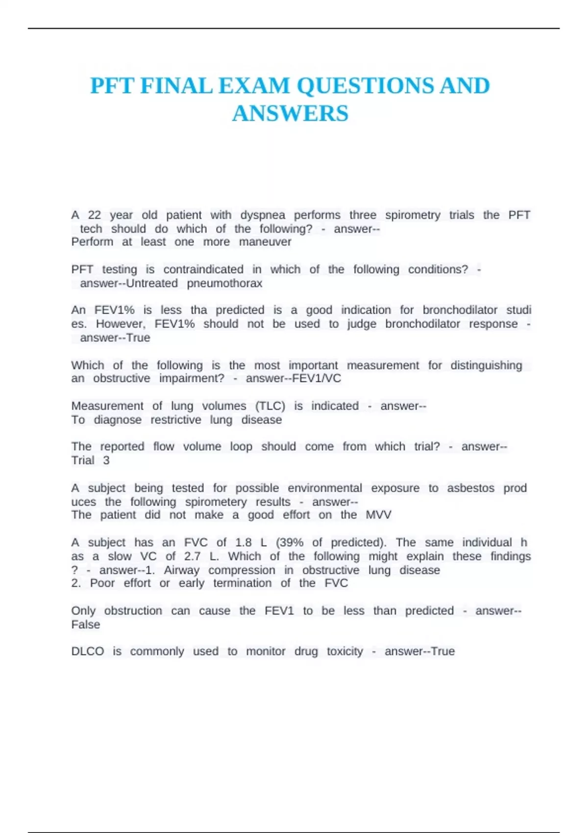 PFT FINAL EXAM QUESTIONS AND ANSWERS