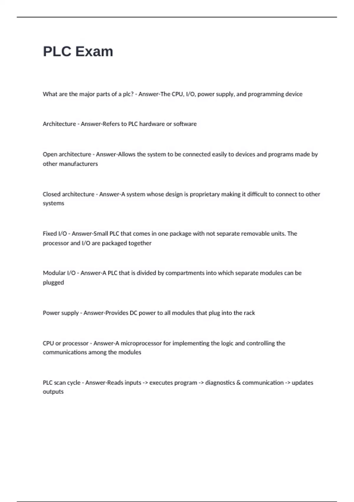PLC Exam Questions with Correct and Verified Answers