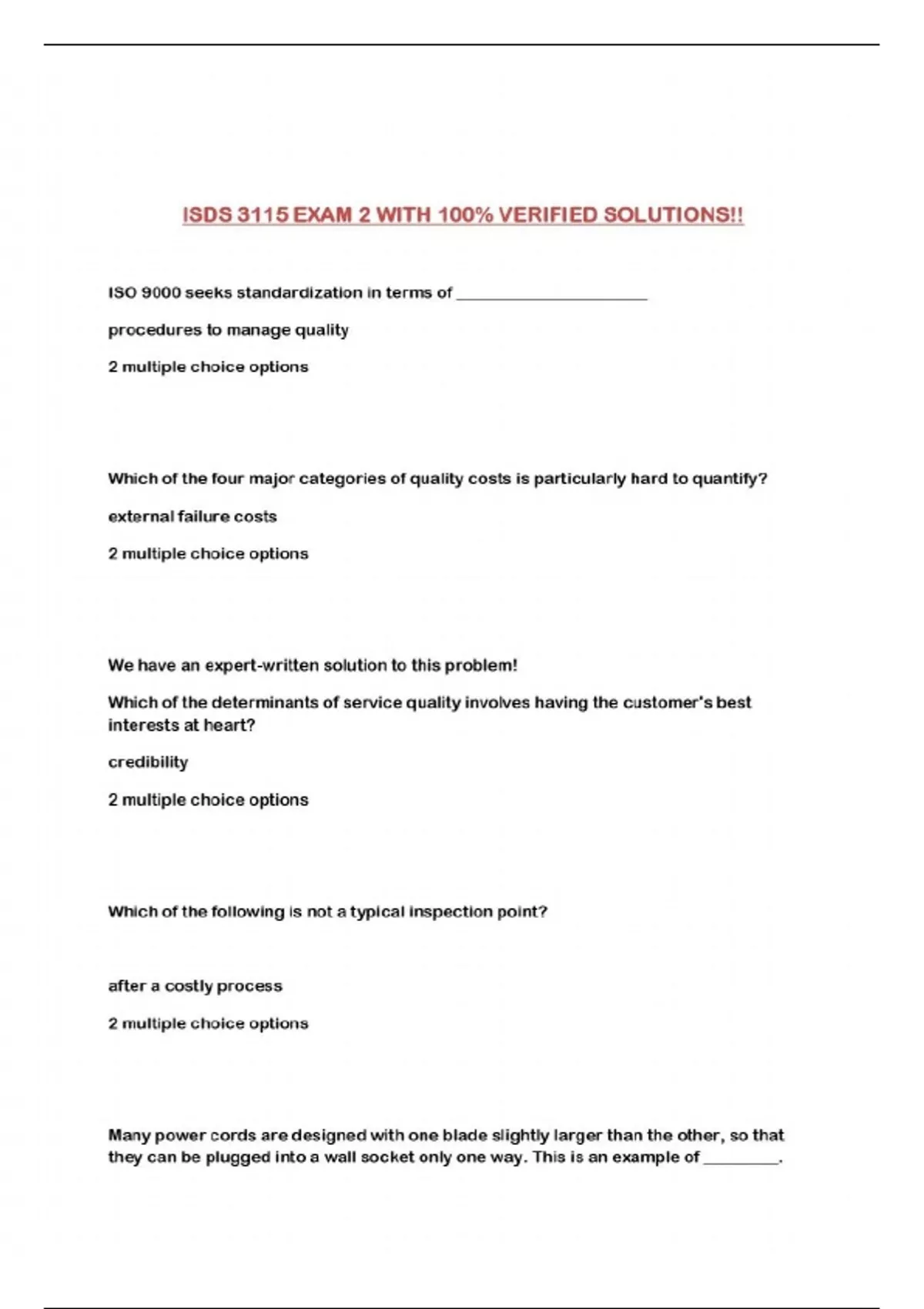 ISDS 3115 EXAM 2 WITH 100% VERIFIED SOLUTIONS!!...
