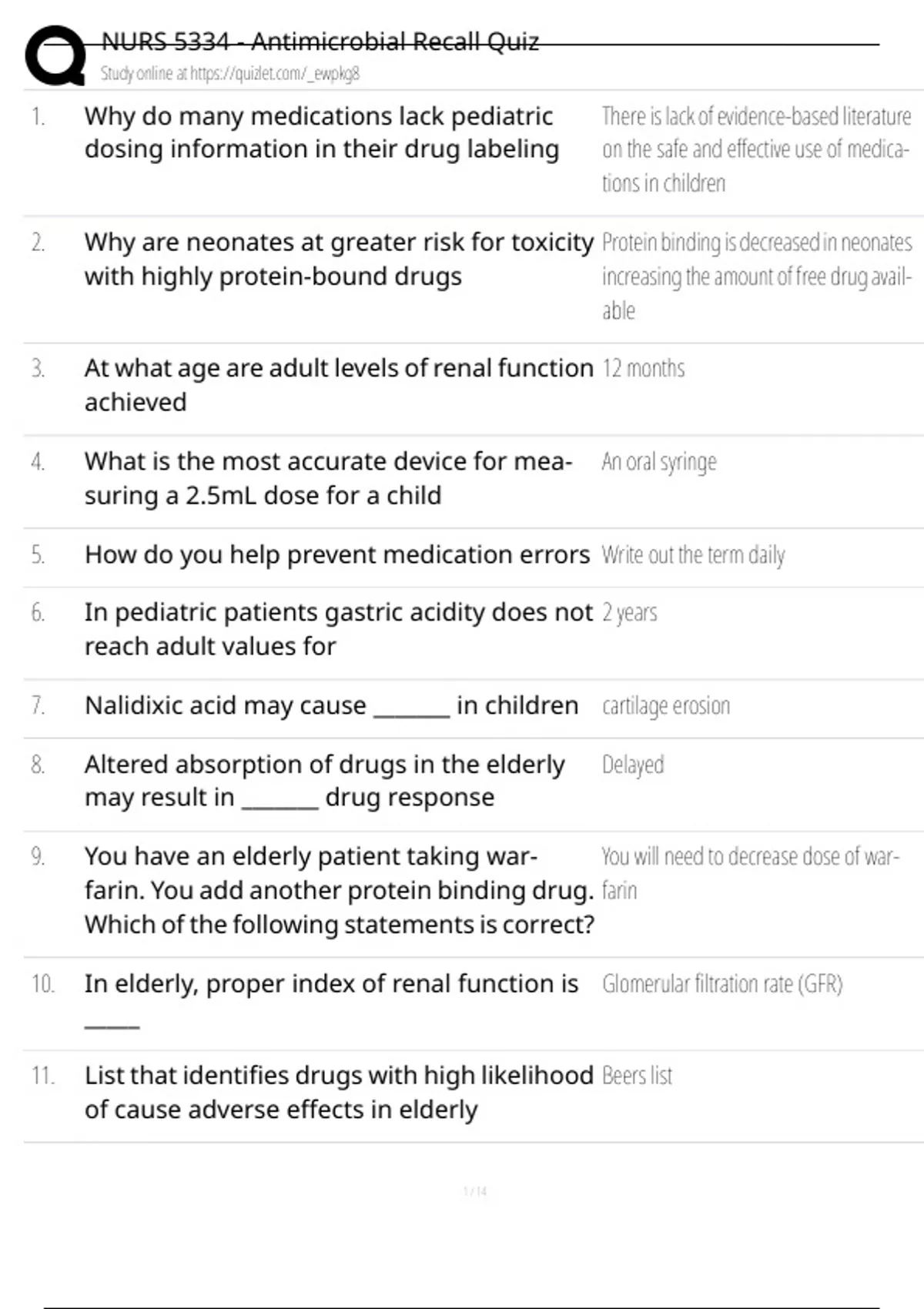 NURS 5334 - Antimicrobial Recall Quiz