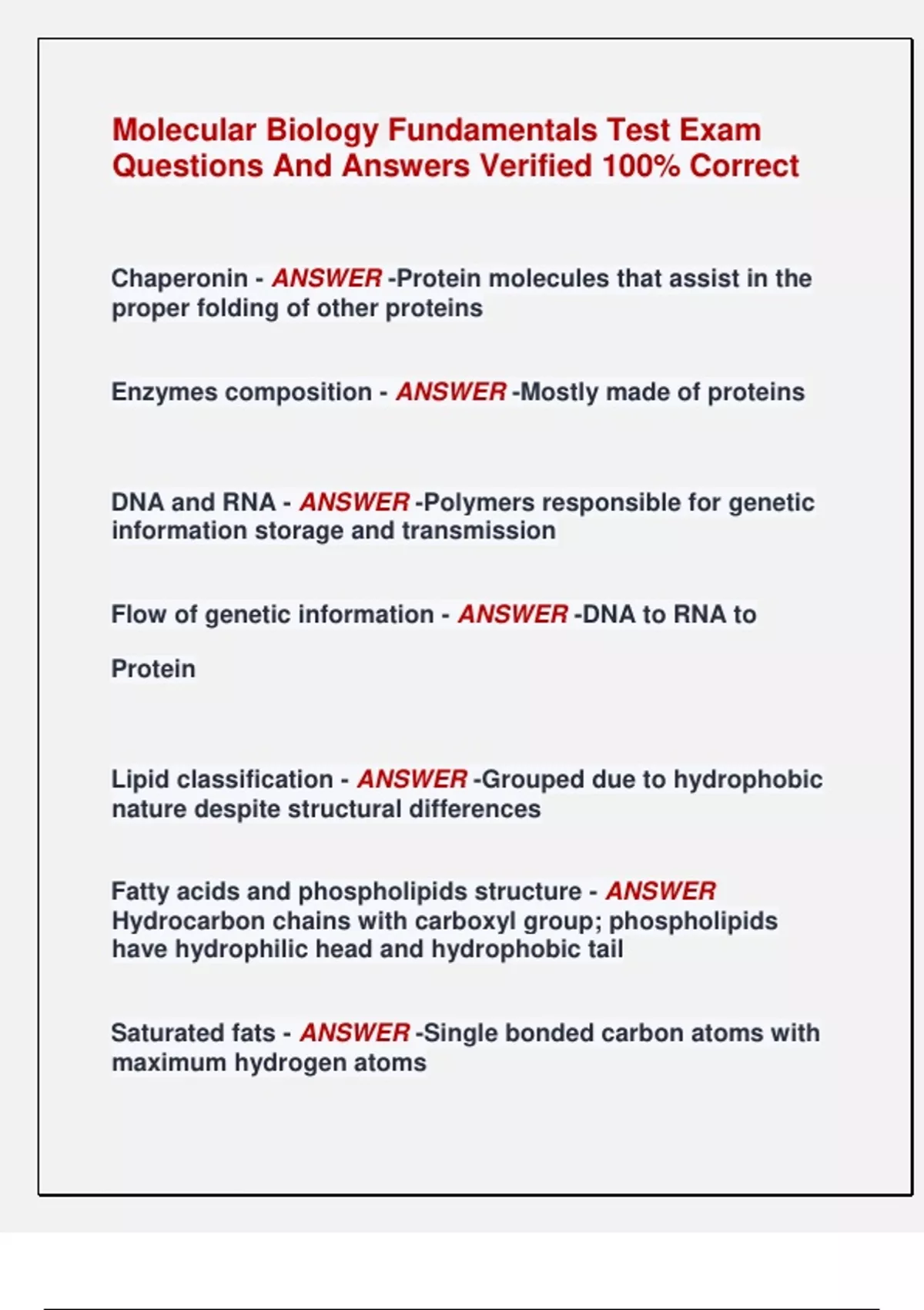 Molecular Biology Fundamentals Test Exam Questions And Answers Verified 100% Correct