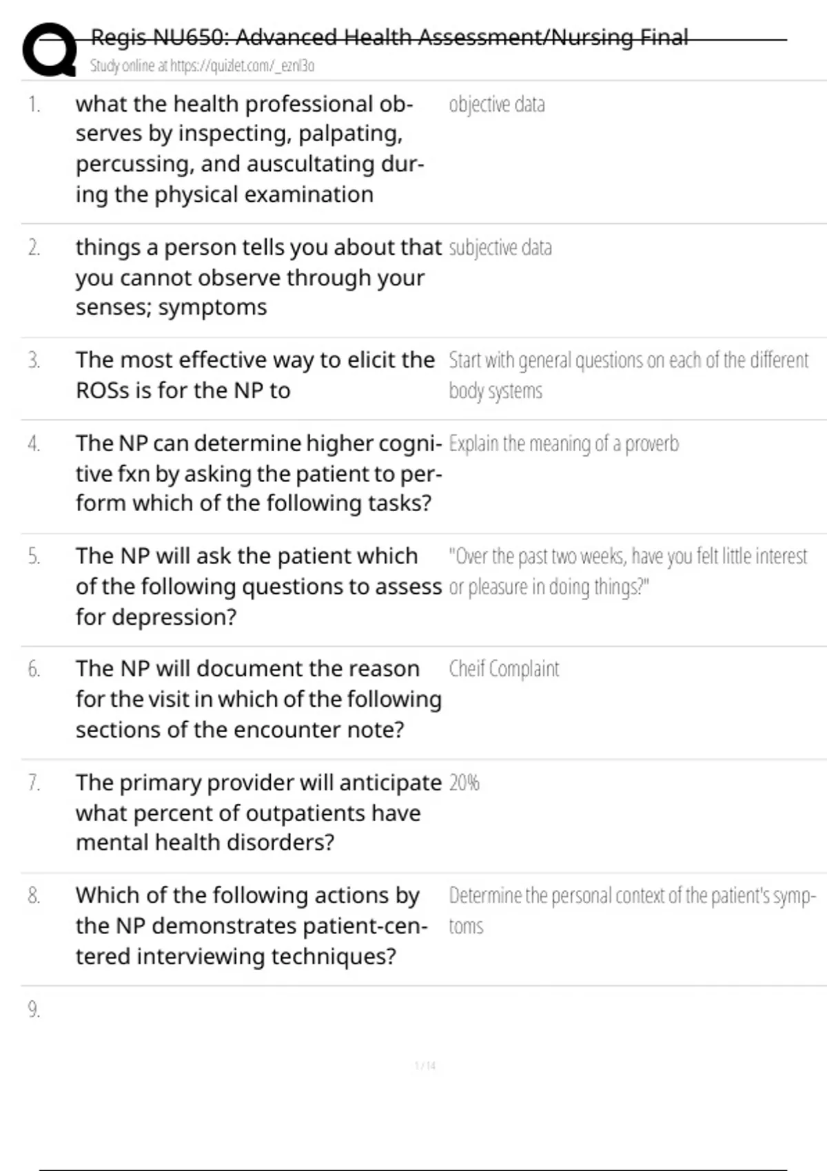 Regis NU650: Advanced Health Assessment/Nursing Final