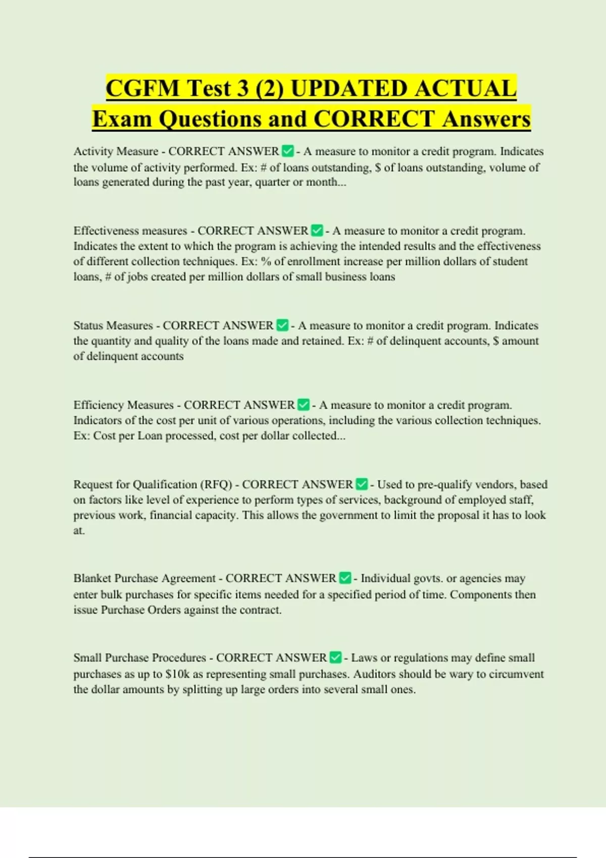 Exam Questions and CORRECT Answers