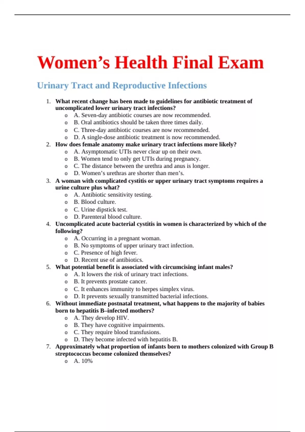 Testing your knowledge on women's health. 1. What is the definition of a primary headache? o A. A headache that only occurs around menstruation. o B. A headache caused by another medical condition. o C. A headache not caused by any other condition. o D. A headache caused by muscle tension. 2. A 23-year-old woman has chronic headaches with visual auras (flashing lights) and then throbbing pain with photophobia, nausea, and vomiting. The most likely diagnosis is: o A. Cluster headache. o B. Migraine headache. o C. Temporal arteritis. o D. Transient ischemic attacks (TIAs).